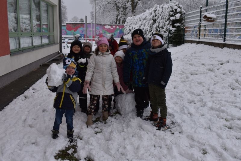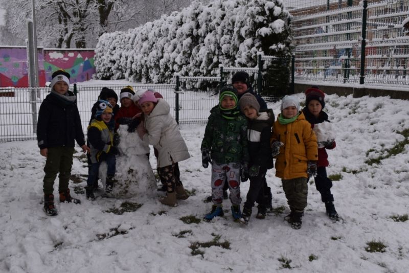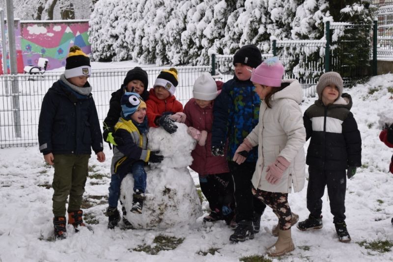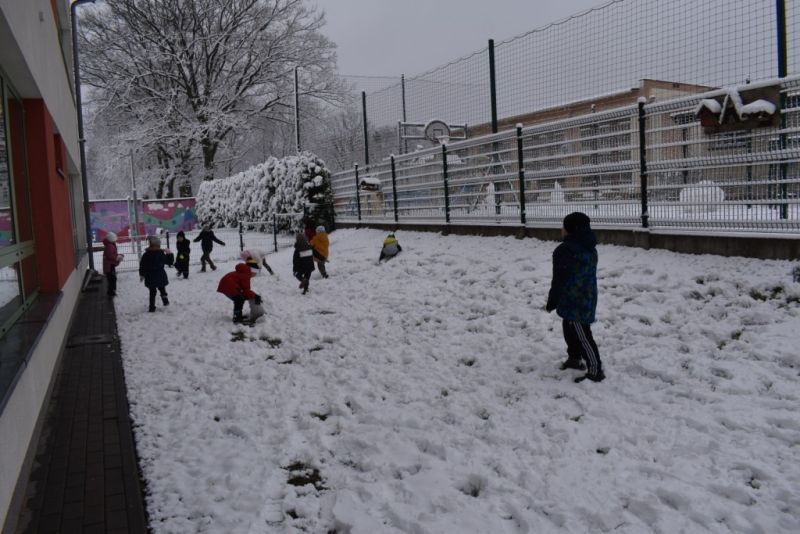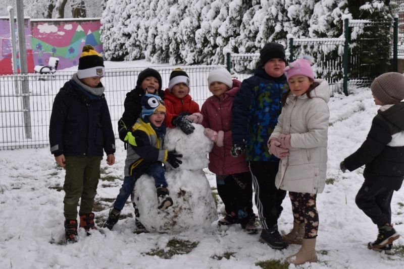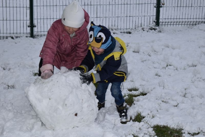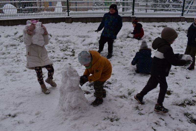 Z utęsknieniem czekaliśmy na pierwszy śnieg i w końcu doczekaliśmy się. Dzisiaj był pierwszy prawdziwy, biały zawrót głowy i cudowne zimowe zabawy na śniegu. Śnieg idealny do lepienia. Szaleństwu, zabawom nie było końca.