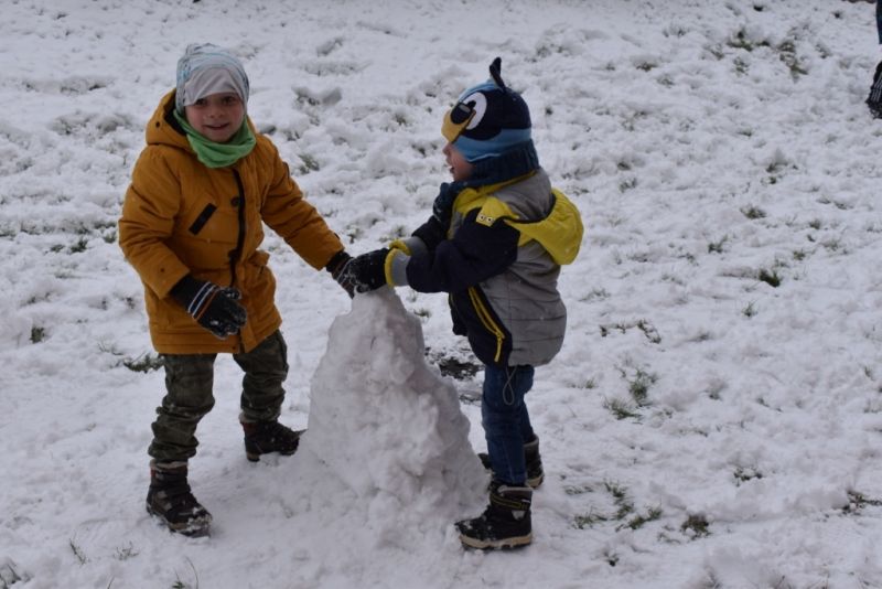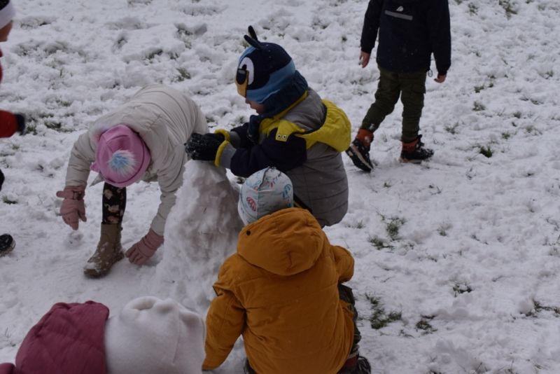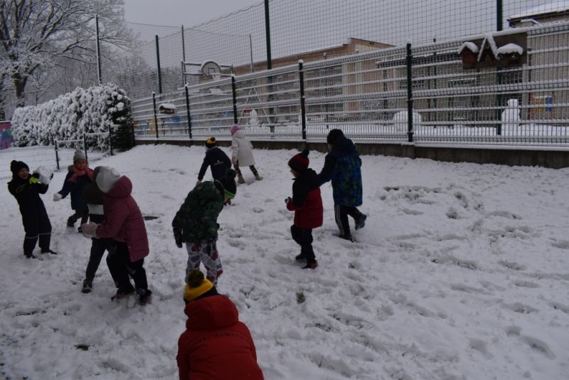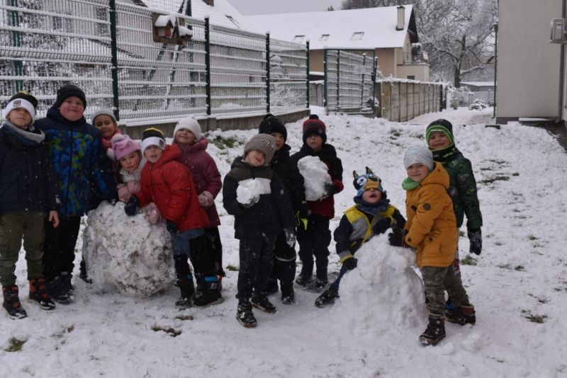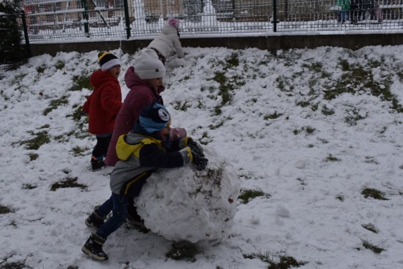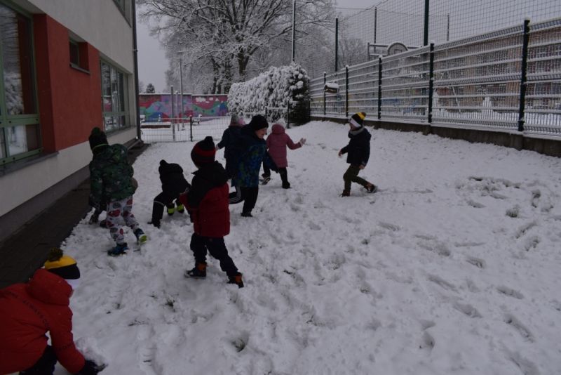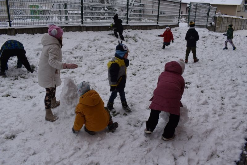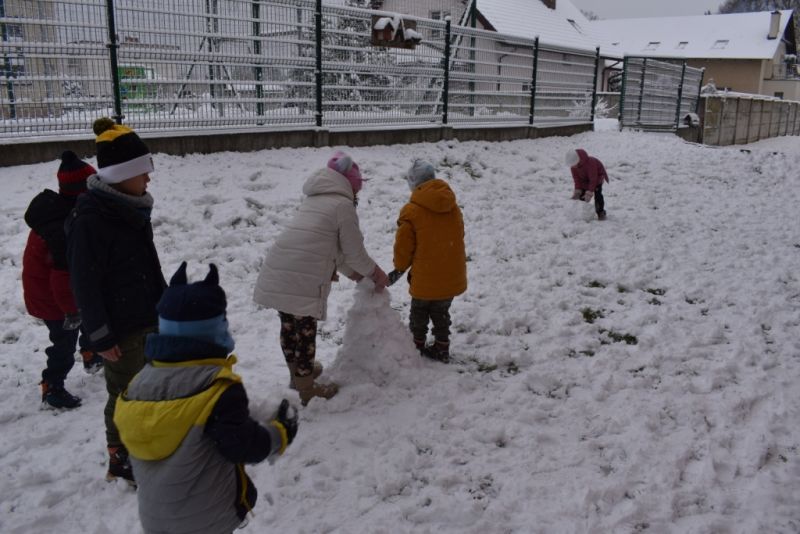 Z utęsknieniem czekaliśmy na pierwszy śnieg i w końcu doczekaliśmy się. Dzisiaj był pierwszy prawdziwy, biały zawrót głowy i cudowne zimowe zabawy na śniegu. Śnieg idealny do lepienia. Szaleństwu, zabawom nie było końca.