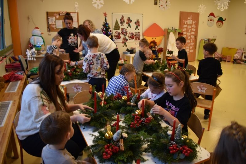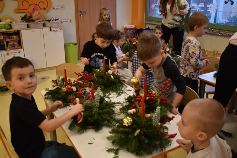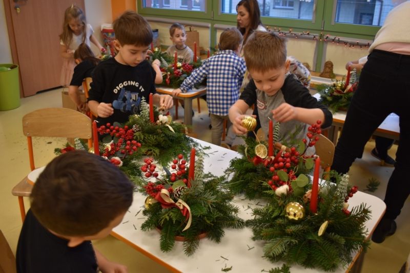 Dzisiaj odbyły się warsztaty świąteczne z Kwiaciarnią "Kwiecie- Plecie" podczas których dzieci wykonały przepiękne stroiki świąteczne. Dzieci aktywnie uczestniczyły w zajęciach, które bardzo im się podobały. Podczas zajęć powstały piękne świąteczne stroiki, które będę cudownymi upominkami dla rodziców na zbliżające się święta. Kwiaciarni oraz wspaniałym Paniom prowadzącym (p. Justynce, p. Asi) dziękujemy za wspaniałe warsztaty- było super!!!