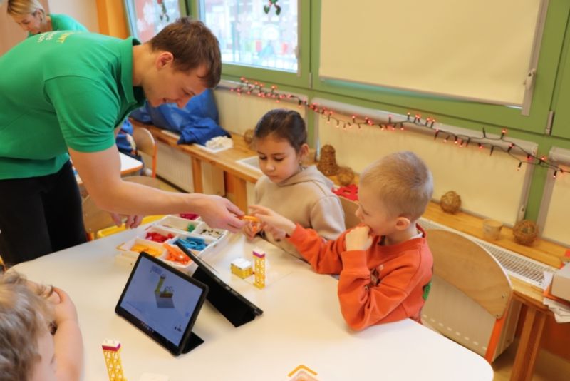 Dzisiaj w naszym przedszkolu po raz kolejny w tym roku szkolnym odbyły się warsztaty z klockami lego. Zajęcia, które skupiły się na rozwijaniu kreatywności, logicznego myślenia i umiejętności współpracy poprzez zabawę. Dzieci konstruowałyu roboty, budowały labirynty, a nawet programowały swoje konstrukcje, co dostarczyło im wiele radości i uczyło ich poprzez praktyczne działania.