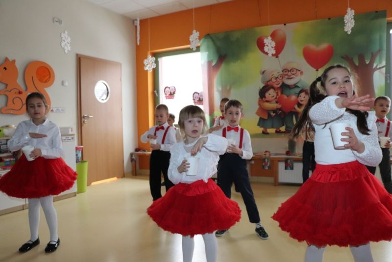 Dzisiaj w naszym przedszkolu odbyła się uroczystość z okazji Dnia Babci i Dziadka. Nasza grupa zaprezentowała program artystyczny specjalnie dla kochanych dziadków. Wszystkie dzieci samodzielnie recytowały wiersze, śpiewały piosenki, tańczyły i grały na instrumentach.Po występach dzieci wręczyły dziadkom upominki samodzielnie wykonane przez wnuki. To był piękny uroczysty dzień, pełen radości, uśmiechów ale też wzruszeń. Dziękujemy rodzicom za pyszne ciasta i wszechstronną pomoc.
