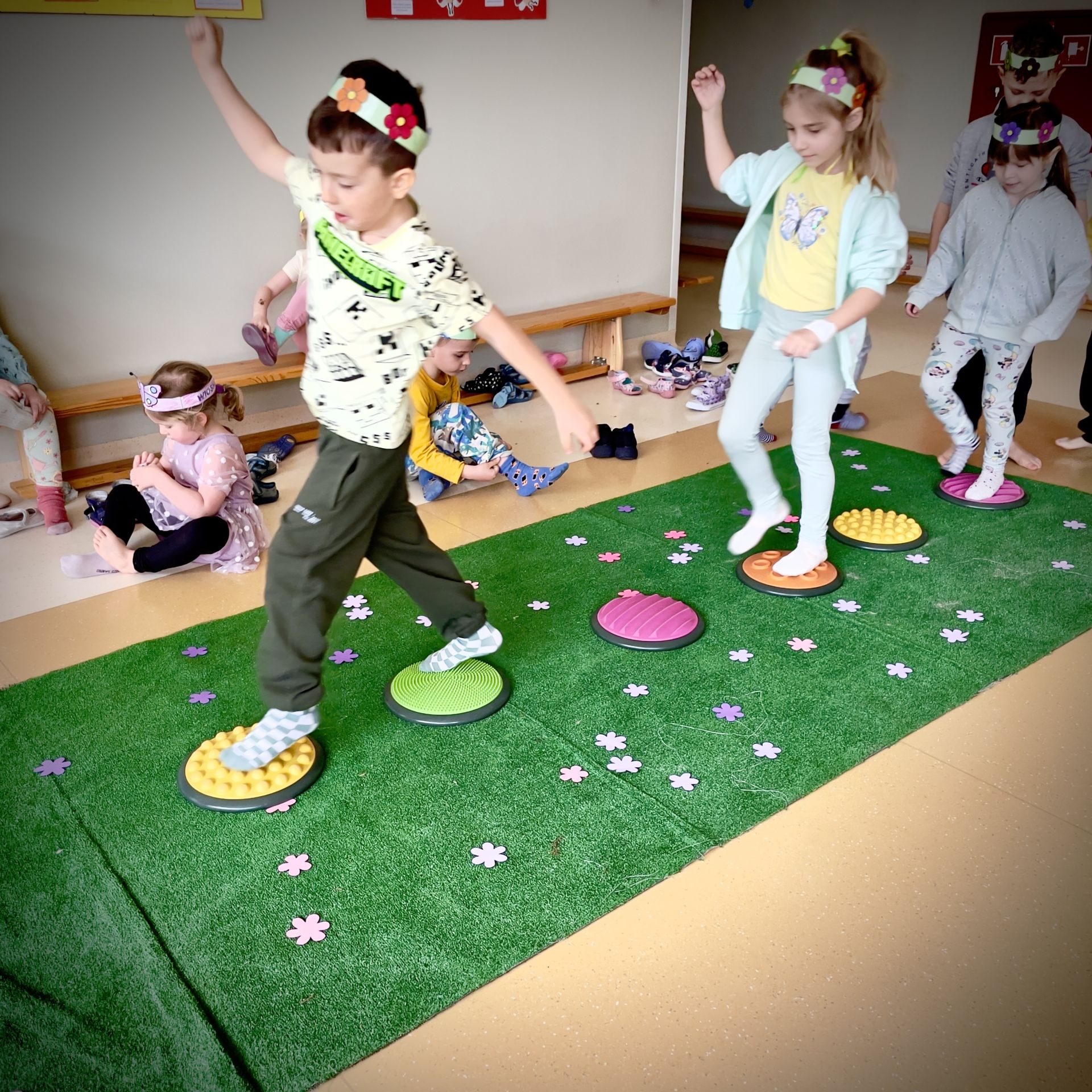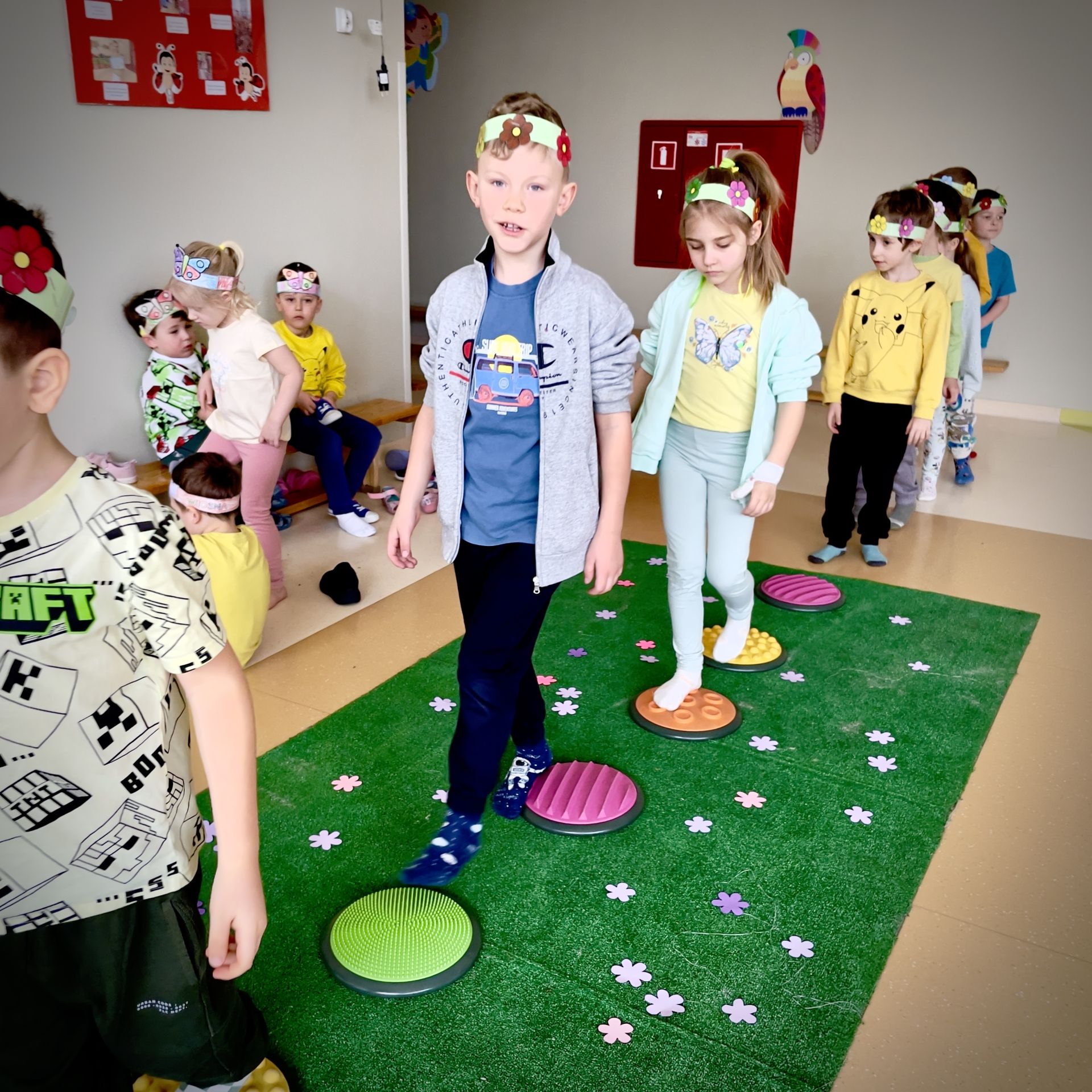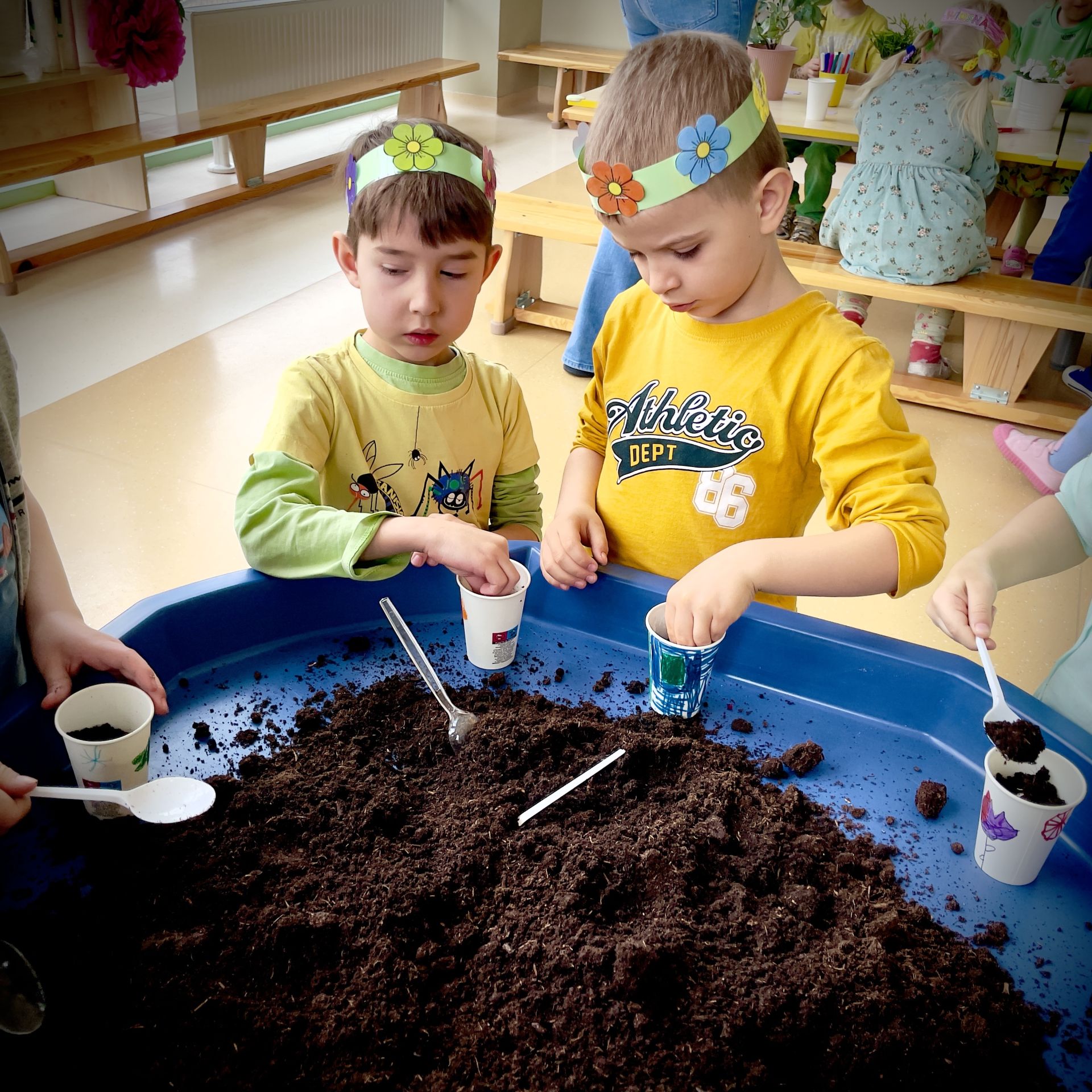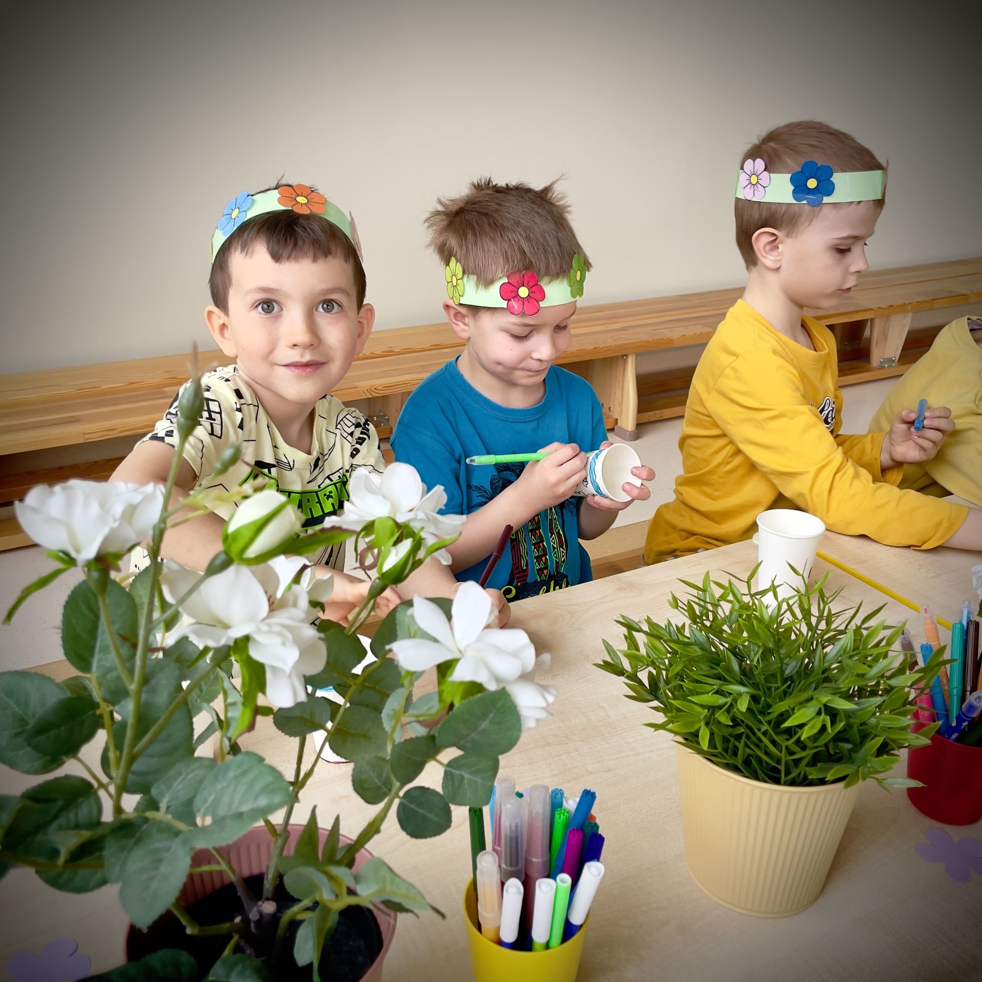 W dniu dzisiejszym dzieci radośnie powitały nową porę roku uczestnicząc w kreatywnych zajęciach sensoplastycznych. Wspólnie z Panią Wiosną rozmawialiśmy o oznakach wiosny - rozkwitających kwiatach, śpiewie ptaków, i budzącej się do życia przyrodzie. Nie zabrakło wspólnych zabaw ruchowych, piosenek o wiośnie. które wprowadziły wszystkich w pogodny nastrój. Szczególną atrakcją były zajęcia sensoplastyczne, które dostarczyły dzieciom wielu niezapomnianych wrażeń.