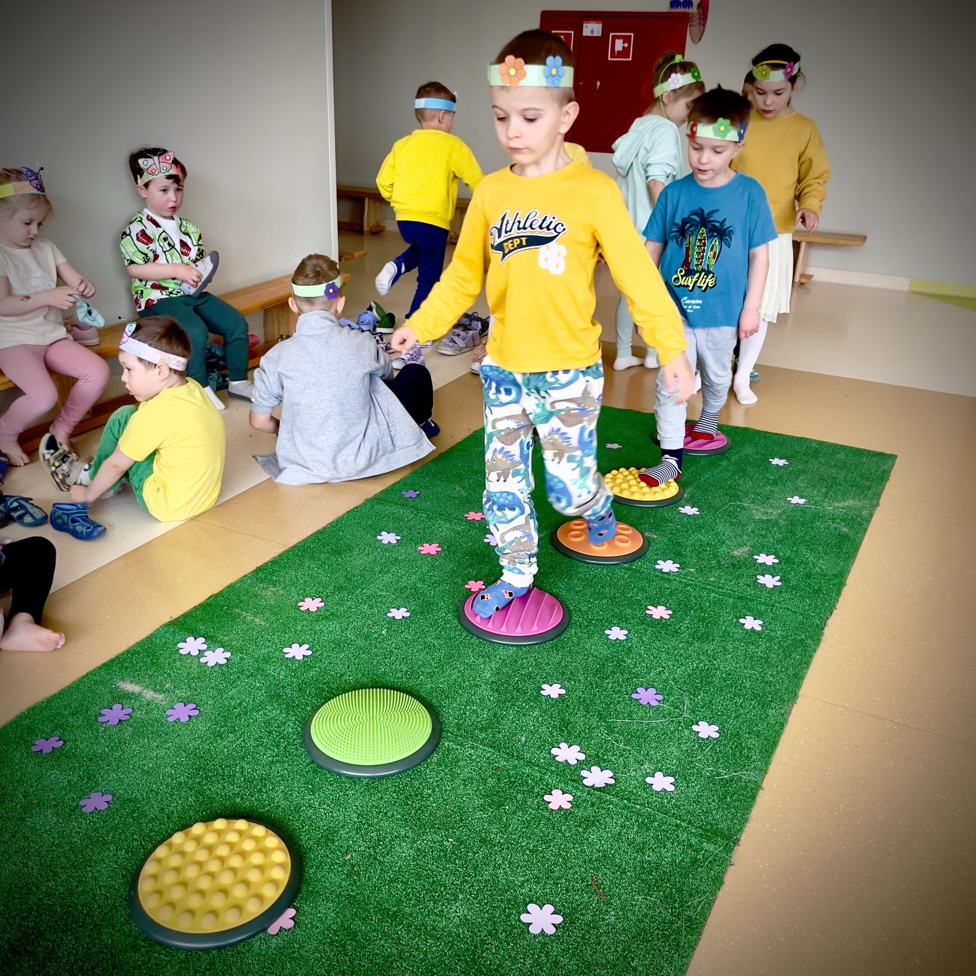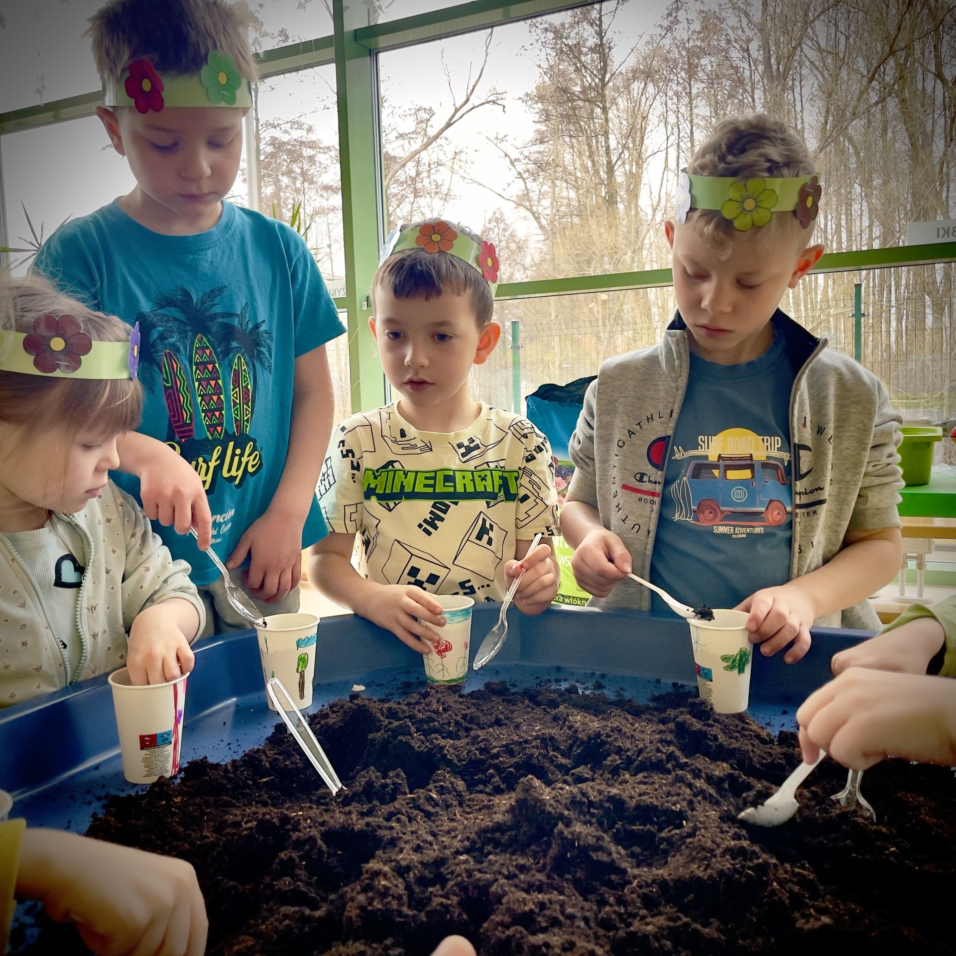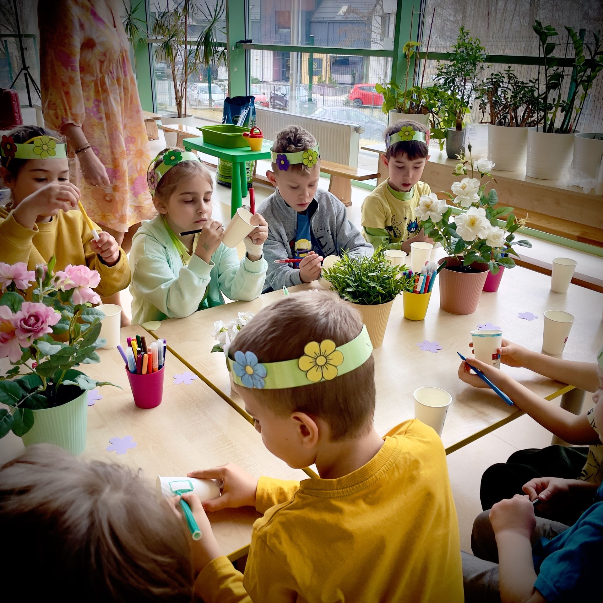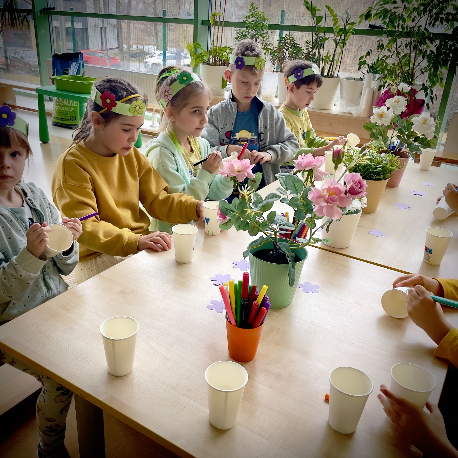 W dniu dzisiejszym dzieci radośnie powitały nową porę roku uczestnicząc w kreatywnych zajęciach sensoplastycznych. Wspólnie z Panią Wiosną rozmawialiśmy o oznakach wiosny - rozkwitających kwiatach, śpiewie ptaków, i budzącej się do życia przyrodzie. Nie zabrakło wspólnych zabaw ruchowych, piosenek o wiośnie. które wprowadziły wszystkich w pogodny nastrój. Szczególną atrakcją były zajęcia sensoplastyczne, które dostarczyły dzieciom wielu niezapomnianych wrażeń.