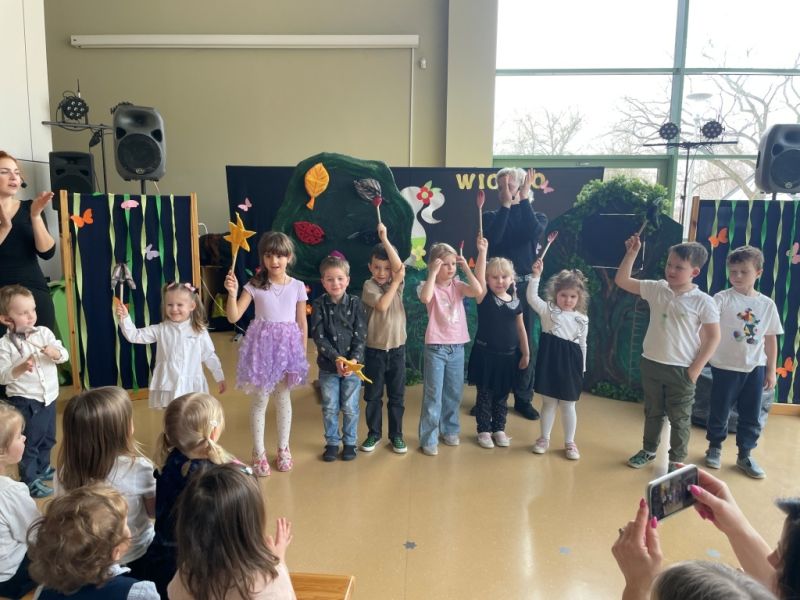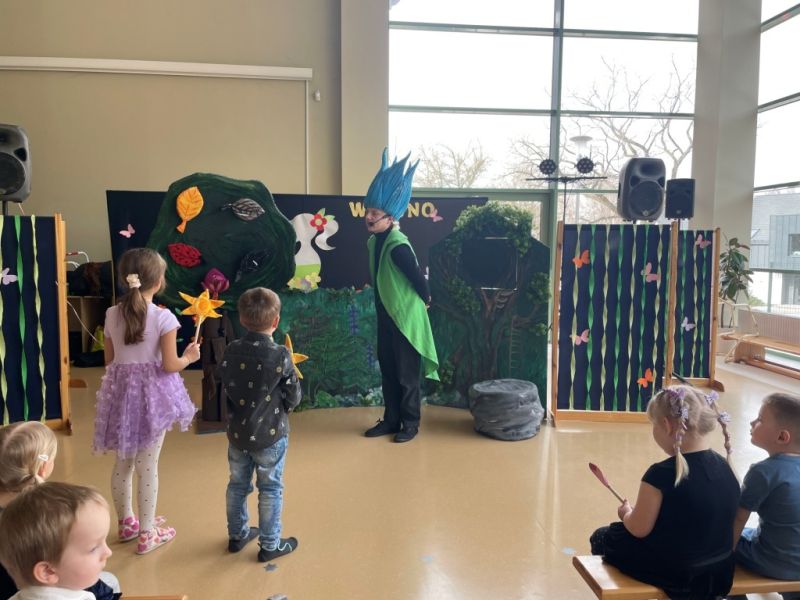 Dzisiaj nasze przedszkole odwiedził Teatr MagMowcy ze spektaklem „Magiczne słowa”. W związku z Międzynarodowym Dniem Teatru właśnie dzisiaj całe przedszkole uroczyście świętowało ten dzień. Spektakl opowiadał o nowym mieszkańcu Panu Narcyzie, który pojawił się w pięknym lesie zamieszkałym przez Trolle. Jego sąsiedzi pragną, by okolica, w której mieszkają była przyjazna dla wszystkich, dlatego zaprosiły do siebie dzieci, które odegrały role biedronek, gawronów, ciem, promyczków i kwiatków. Nasi przedszkolni aktorzy odgrywający określone role przekazały listem poleconym Ważne Słowa głównemu bohaterowi. Proszę, przepraszam, dziękuję, a także dzień dobry i dobranoc na stałe wpiszą się w słownik Pana Narcyza, który przy pomocy nowych przyjaciół zrozumiał potrzebę bycia uprzejmym, która sprawi, że i jemu będzie się żyło lepiej! My również dzisiaj utrwaliliśmy magiczne słowa, którymi posługujemy się na co dzień. Dziękujemy Radzie Rodziców za ufundowanie spektaklu z okazji dzisiejszego święta.