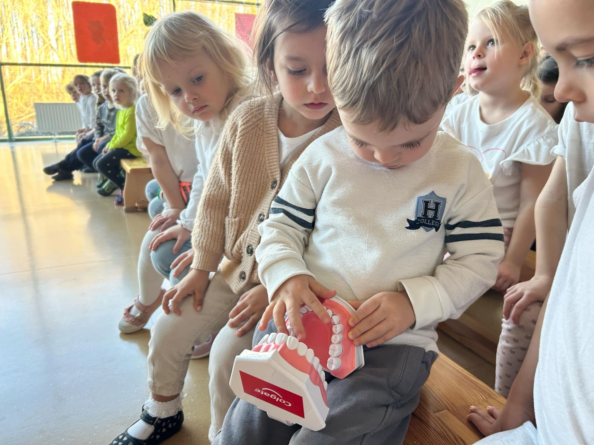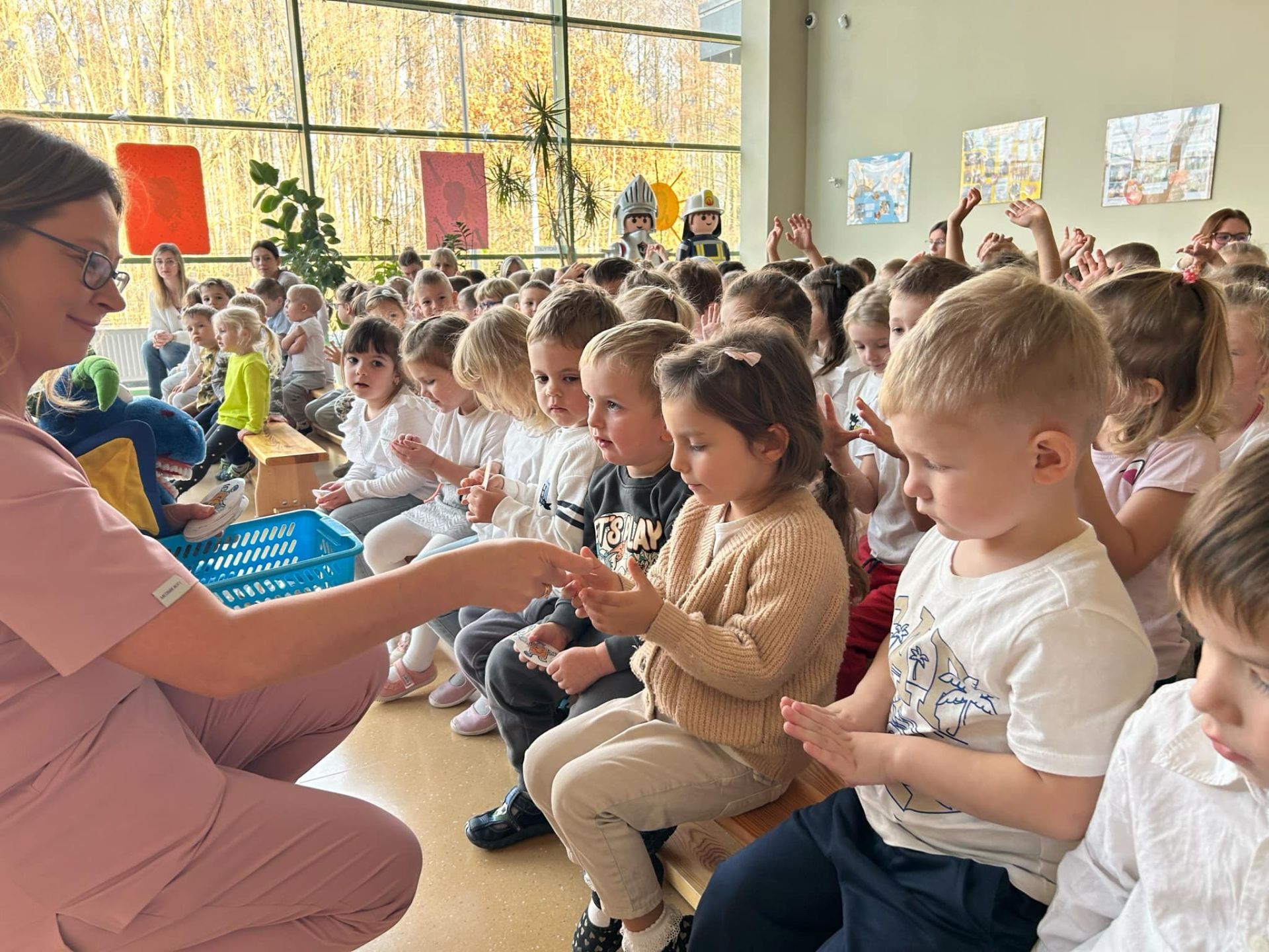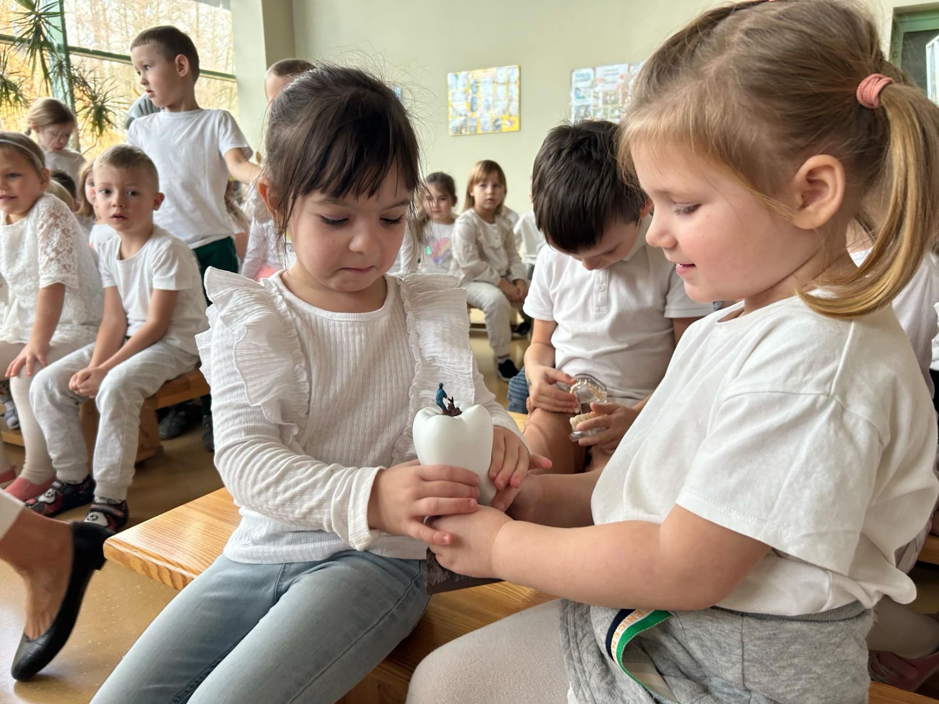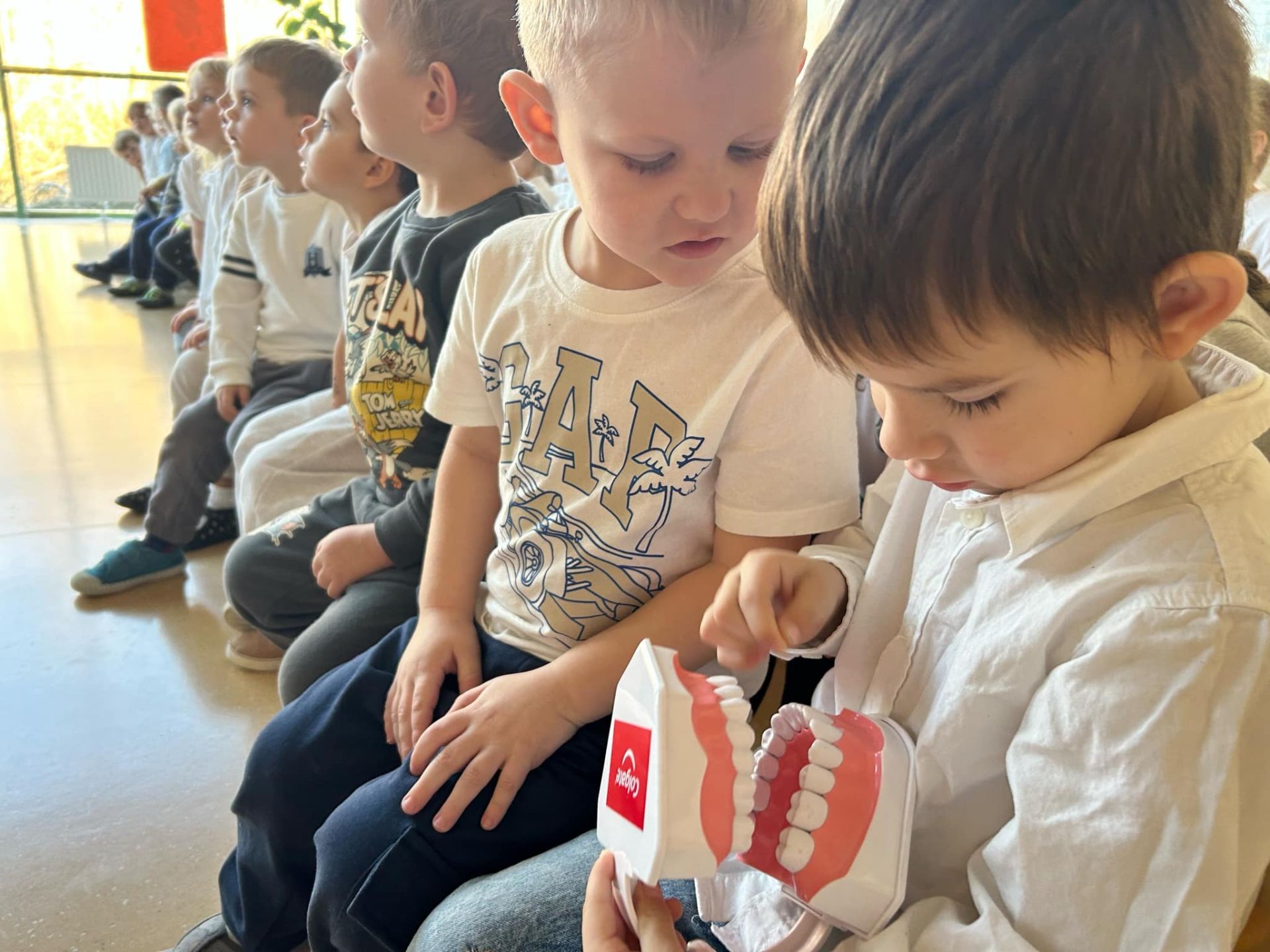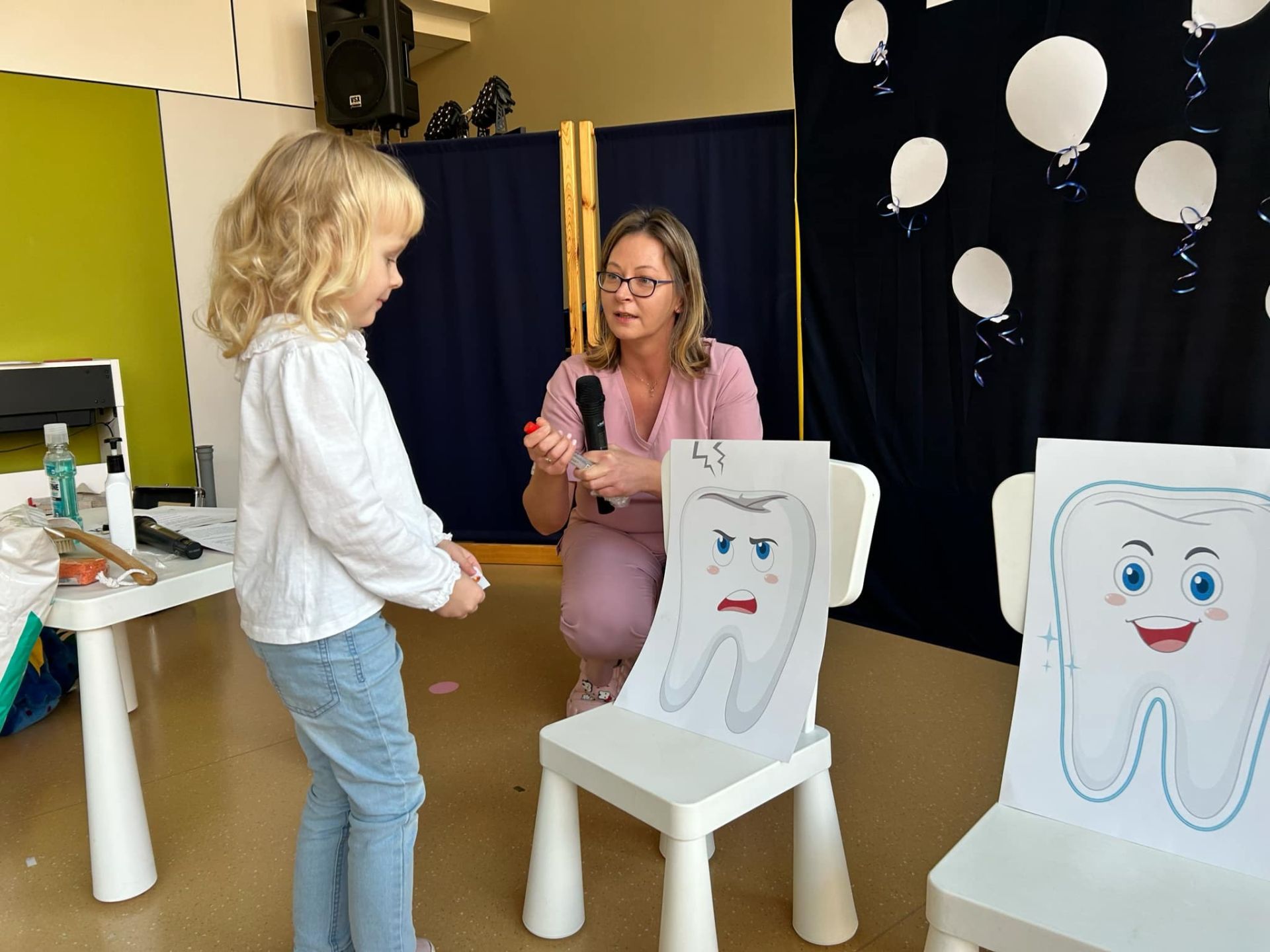 Tego dnia w naszym przedszkolu odbył się dla dzieci Dzień Czyściocha. Przedszkolaki były ubrane na biało i aktywnie uczestniczyły w proponowanych zabawach. Nazywały oraz wskazywały przedmioty niezbędne do dbania o czystość. Poznały również pracę higienistki, ktora pracuje w gabinecie stomatologicznym.