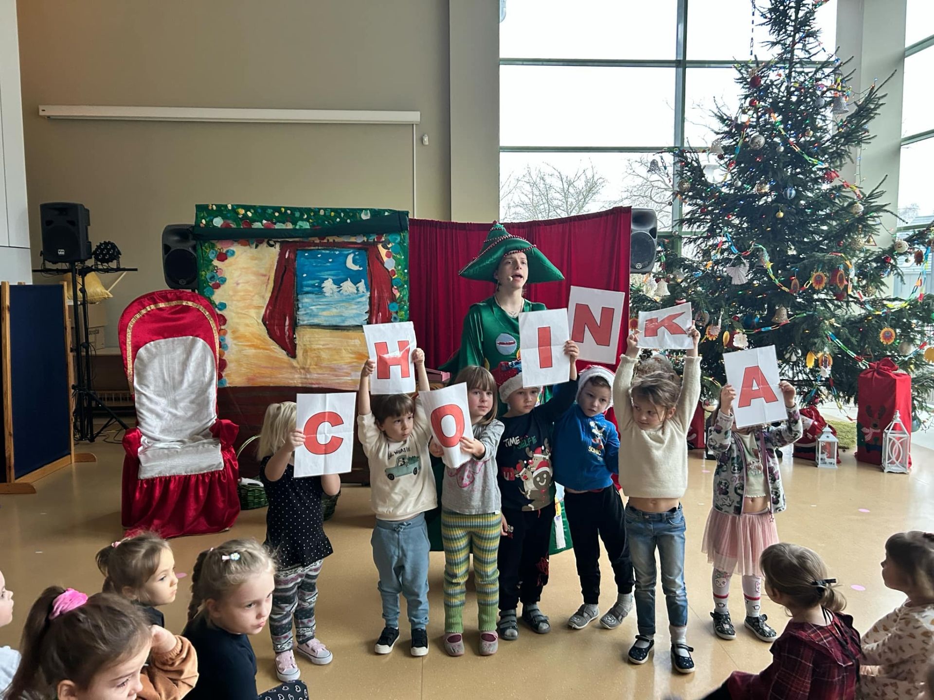 Nasze przedszkole odwiedził dziś Teatr MagMowcy ze spektaklem "W domu u Pani Mikołajowej". Podczas przedstawienia dzieci miały okazję pomóc Pani Mikołajowej w świątecznych przygotowaniach.