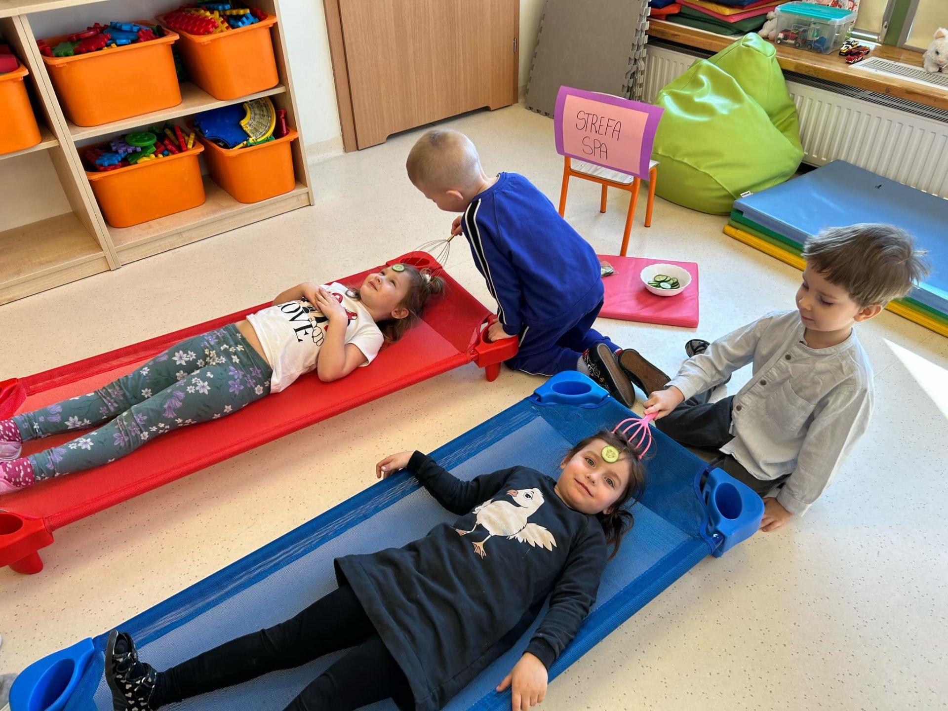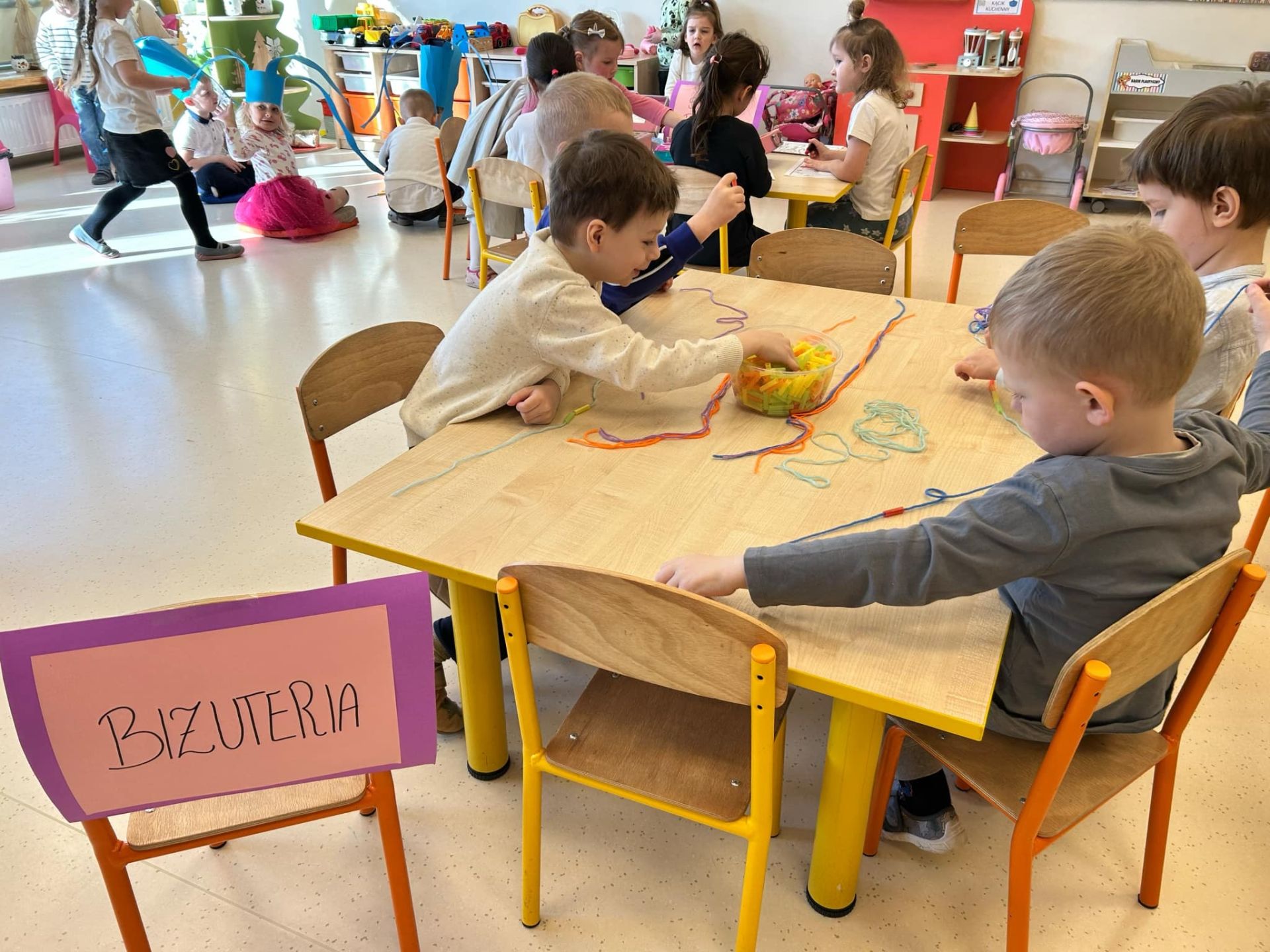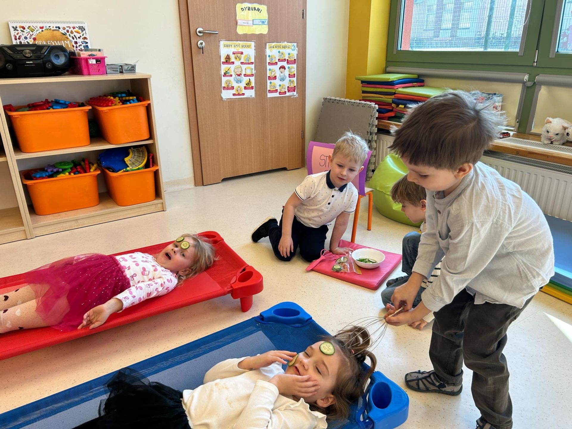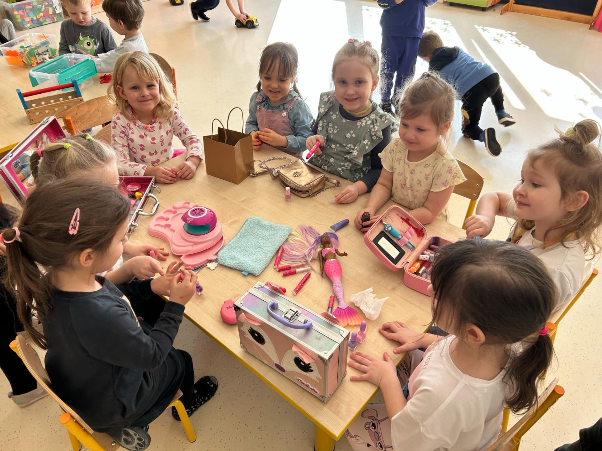 7 marca świętowaliśmy w naszej grupie dzień kobiet. Radosna atmosfera panowała od samego rana, a nasza sala zamieniła się w prawdziwy gabinet spa. Było malowanie paznokci, maseczki na twarz, fryzjer, tworzenie biżuterii,strefa relaksu. Uśmiechniete buzie przedszkolaków, a zwłaszcza dziewczynek świadczyły o miło spędzonym czasie. Tego wyjątkowego dnia nie zabrakło również życzeń i prezentów od chłopców z naszej grupy.