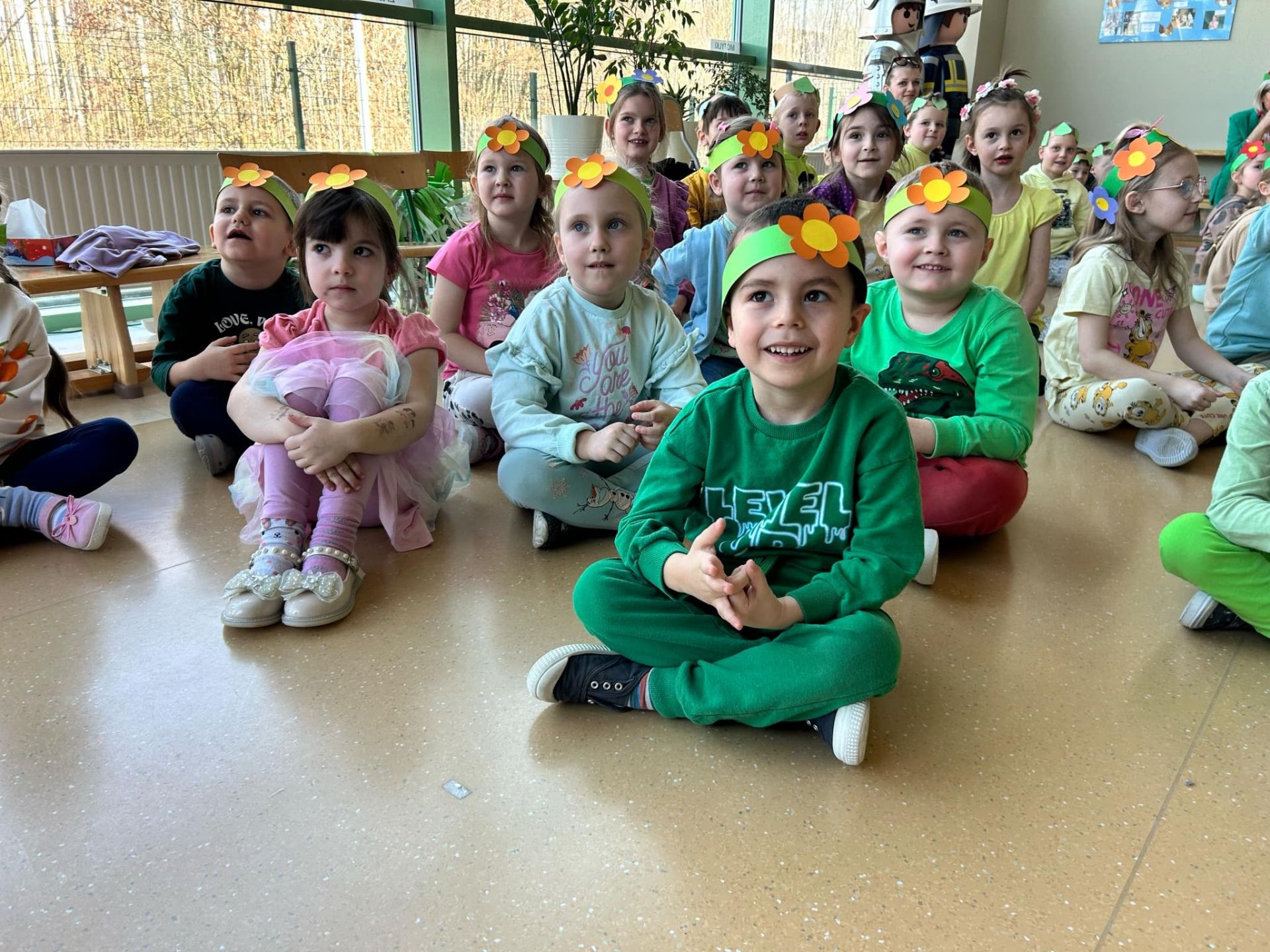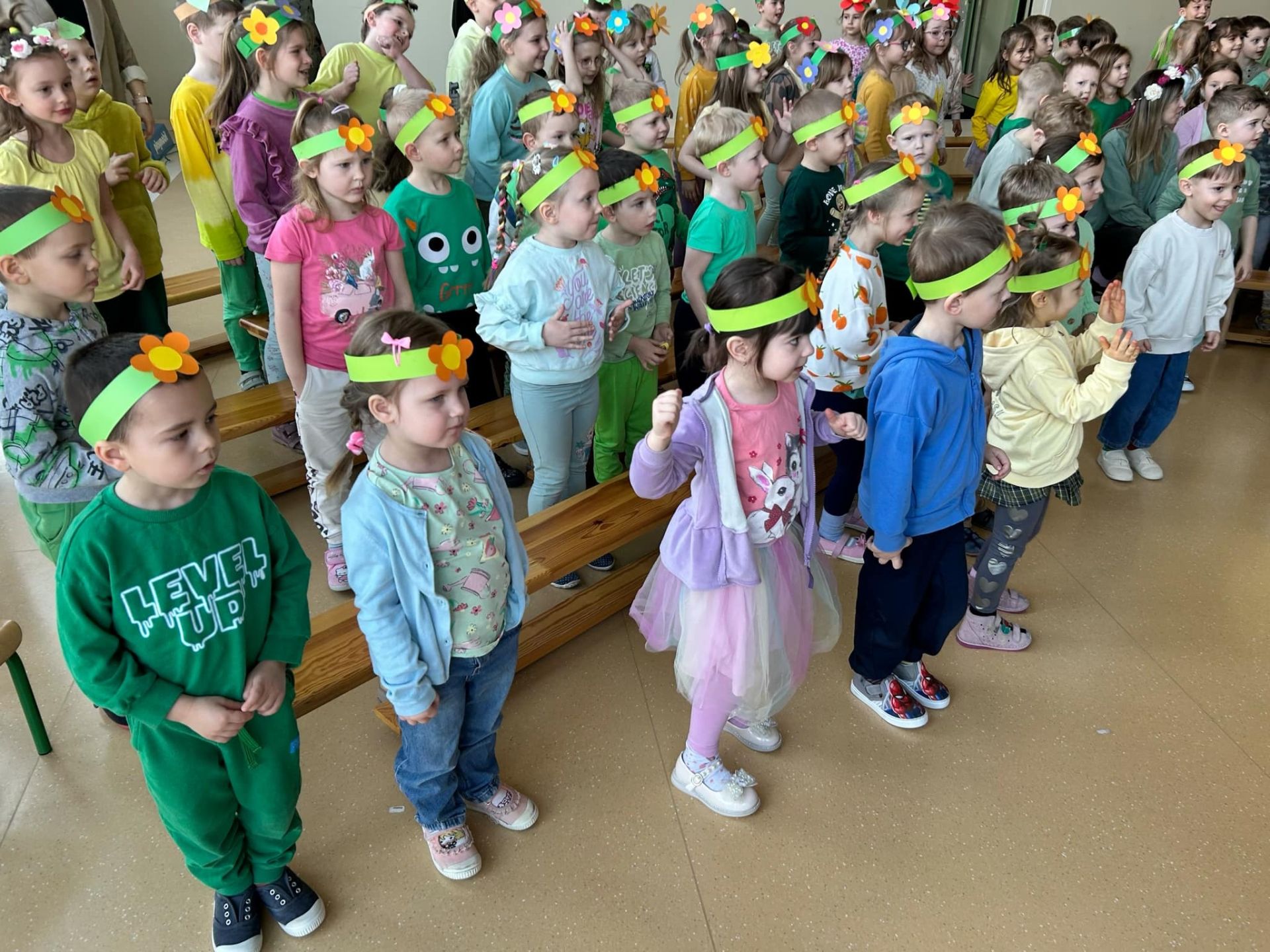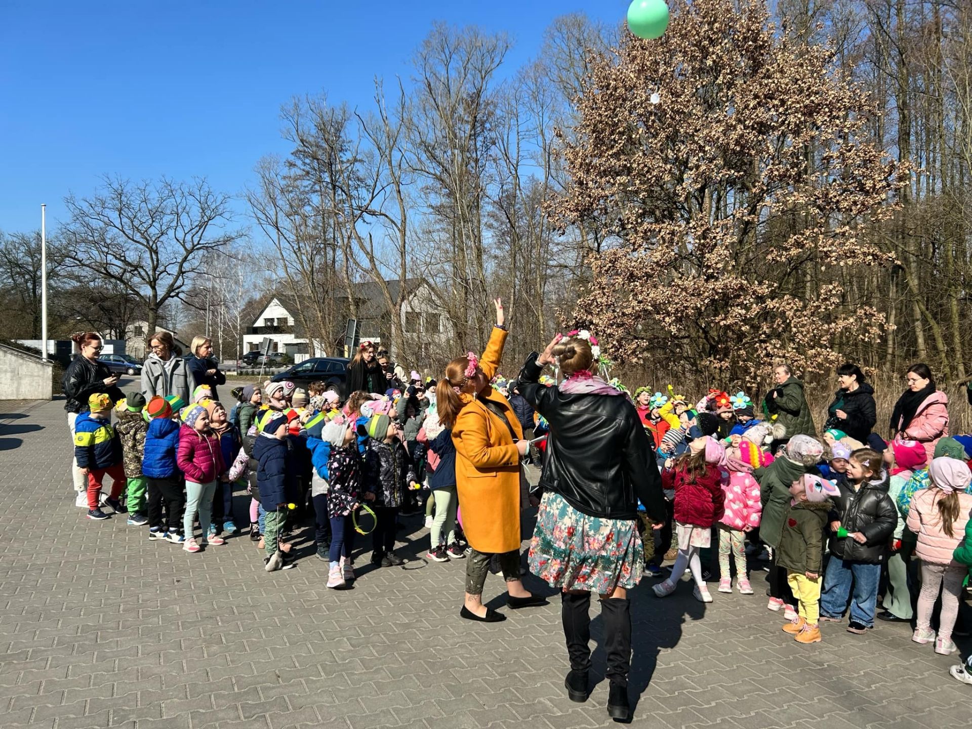 21 marca wszystkie grupy świętowały Pierwszy Dzień Wiosny. Uroczystości powitania Wiosny rozpoczęły się od wspaniałego występu Toruńskiej Orkiestry Symfoncznej. Dzieci miały okazję wysłuchać wiosennych utworów. Spektakl został sfinansowany przez Radę Rodziców. Po audycji muzycznej udaliśmy się na przemarsz witający wiosnę. Przedszkolaki z uśmiechami na twarzy spacerowały razem z Marzanną z wiosennymi wiankami oraz instrumentami. Dzieci pożegnały Marzannę i obiecały spotkać się z Zimą za rok. W drugiej części dnia przedszkolaki uczciły Dzień Kolorowej Skarpetki. Zakładając kolorowe, niepasujące skarpetki zwracamy uwagę na siebie, a tym samym zwracamy uwagę na problemy ludzi z Zespołem Downa. Pokazujemy, że różni nas od nich tak niewiele, jeden niepasujący chromosom, tak jak jedna niepasująca skarpetka. Dzieci uważne wysłuchały co to jest za dzień i dlaczego jest obchodzony.