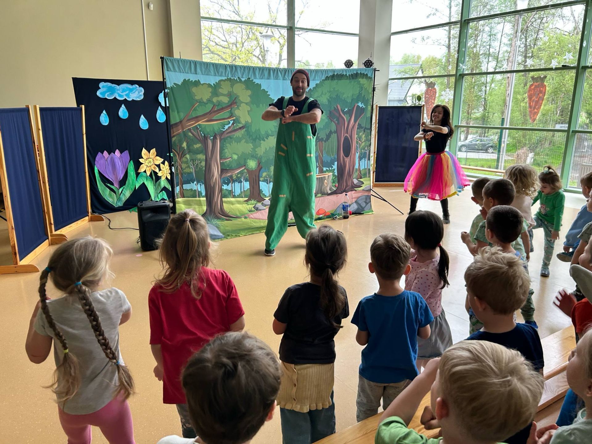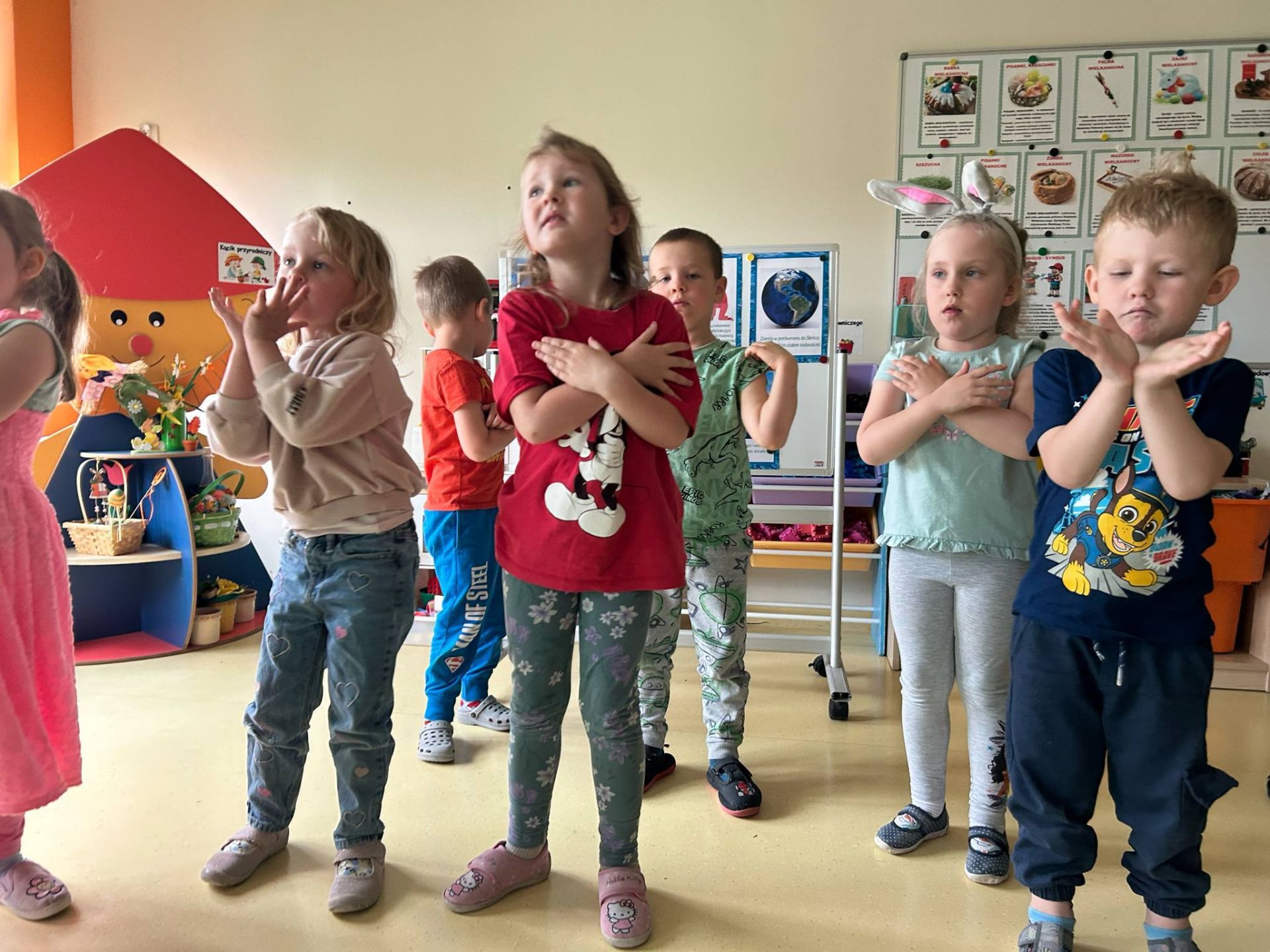 Dziś przedszkolaki świętowały Dzień Ziemi, biorąc udział w zajęciach edukacyjnych o tematyce ekologicznej oraz zabawach badawczych. Specjalnie z tej okazji odbył sie w naszym przedszkolu również spektakl teatralny pt. "Gang Śmieciaków" w wykonaniu grupy T. Spektakl ten został zasponsorowany przez Państwa Izabelę i Marcina Kopczyńskich - rodziców Ignasia z grupy Sówki, którym serdeczcnie dziękujemu za pomoc i zaangażowanie w organizację tego wydarzenia. Dzieci już wiedzą, że dla dobra naszej planety należy sadzić drzewa, pielęgnować rośliny, dbać o przyrodę, oszczędzać wodę i prąd, segregować smieci i ograniczać zużycie plastiku. To był bardzo wesoły i ciekawy dzień.