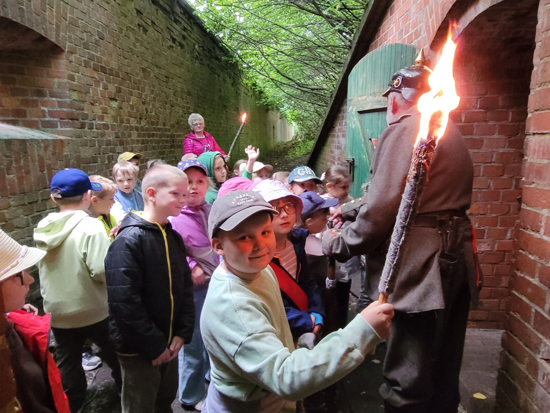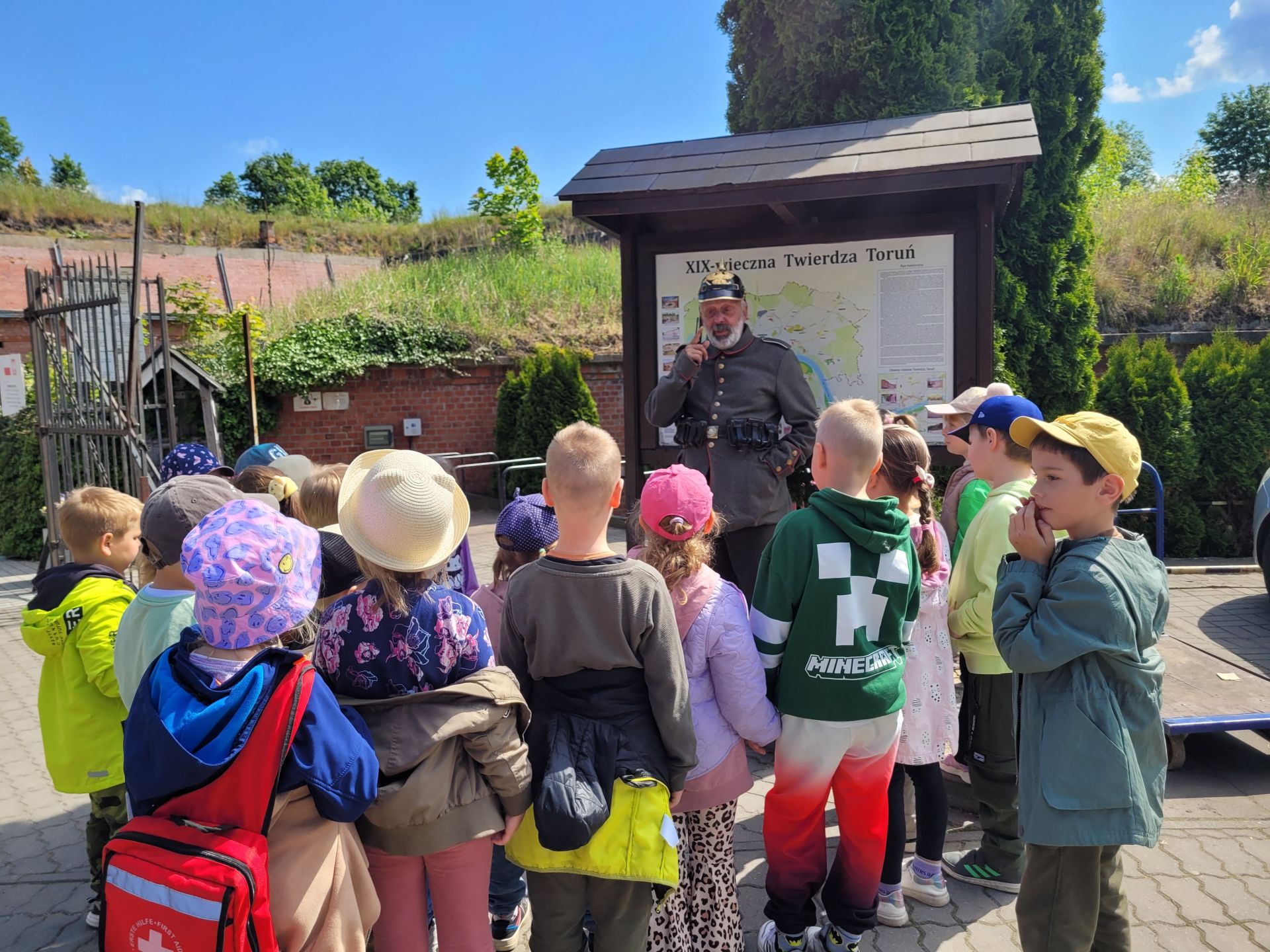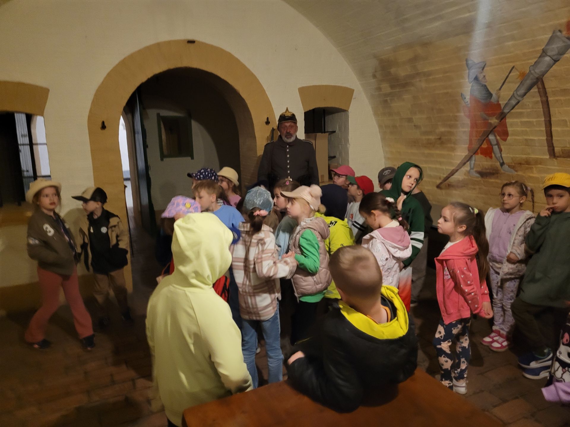 Fort IV jest przykładem doskonale zachowanego obiektu fortecznego zewnętrznego pierścienia Twierdzy Toruń z końca XIX wieku. Dzięki wyjątkowej atmosferze tego miejsca możemy się przenieść w czasie do wieku pary i telegrafu. Trasa zwiedzania wiedzie poprzez część koszarową podziemnymi tunelami do części bojowej, w której można zobaczyć stanowiska ochrony dna fosy, własnoręcznie obrócić 200 kilogramową kopułą, a także zaczerpnąć łaski losu w "szczęśliwej latrynie". Absolutnym hitem jest zwiedzanie pod komendą pruskiego żołnierza w naszym przypadku był to Pan Wojtek. Dodatkową atrakcją było zwiedzanie z pochodniami, sztafeta z ,,granatem", przeciąganie liny i oczywiście jak na obiekcie wojskowym przystało, obowiązkowa musztra. Na zakończnie było ognisko i kiełbaski. Wszystkim dzieciom bardzo sie podobało, szczęśliwe i bardzo zmęczone wróciły do przedszkola :)