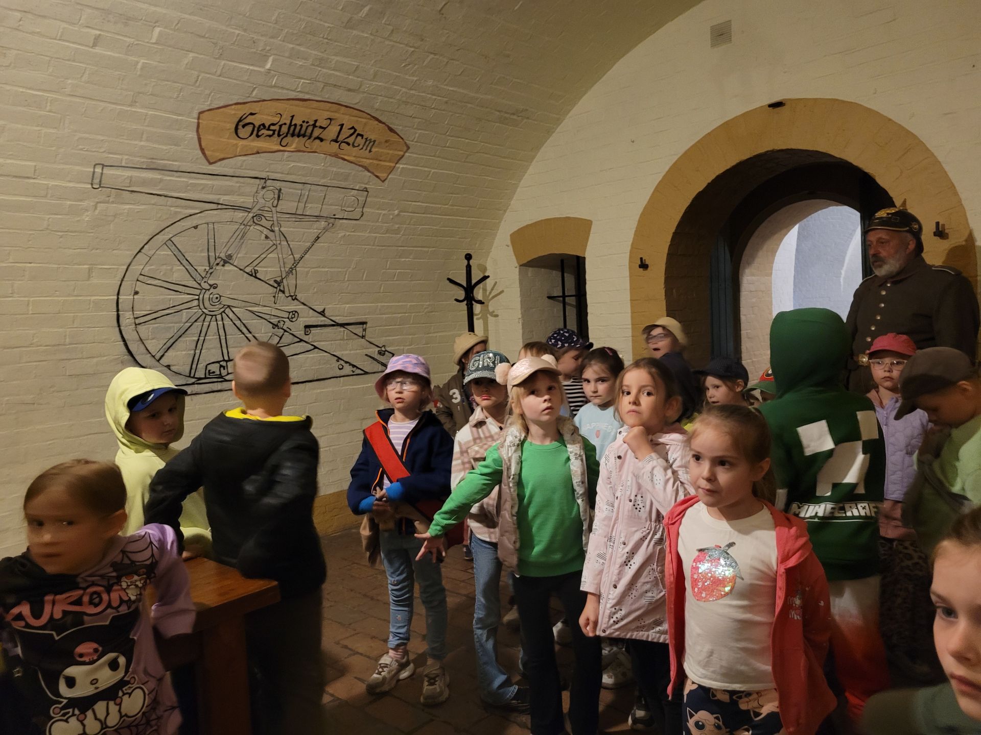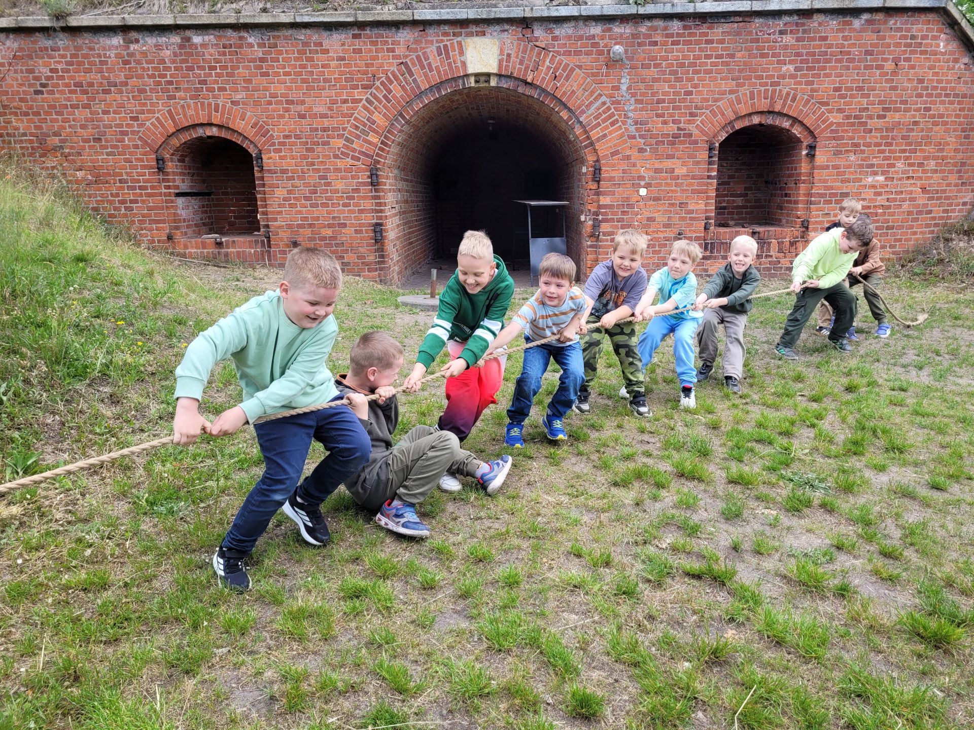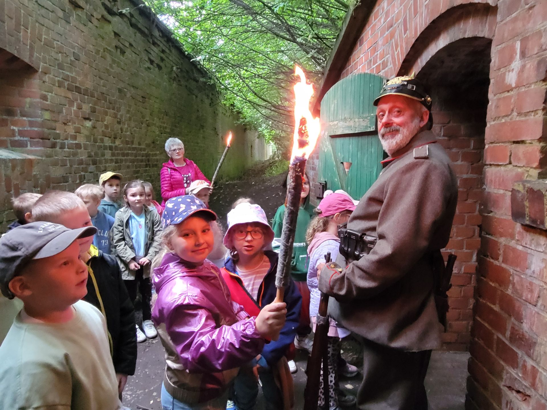 Fort IV jest przykładem doskonale zachowanego obiektu fortecznego zewnętrznego pierścienia Twierdzy Toruń z końca XIX wieku. Dzięki wyjątkowej atmosferze tego miejsca możemy się przenieść w czasie do wieku pary i telegrafu. Trasa zwiedzania wiedzie poprzez część koszarową podziemnymi tunelami do części bojowej, w której można zobaczyć stanowiska ochrony dna fosy, własnoręcznie obrócić 200 kilogramową kopułą, a także zaczerpnąć łaski losu w "szczęśliwej latrynie". Absolutnym hitem jest zwiedzanie pod komendą pruskiego żołnierza w naszym przypadku był to Pan Wojtek. Dodatkową atrakcją było zwiedzanie z pochodniami, sztafeta z ,,granatem", przeciąganie liny i oczywiście jak na obiekcie wojskowym przystało, obowiązkowa musztra. Na zakończnie było ognisko i kiełbaski. Wszystkim dzieciom bardzo sie podobało, szczęśliwe i bardzo zmęczone wróciły do przedszkola :)