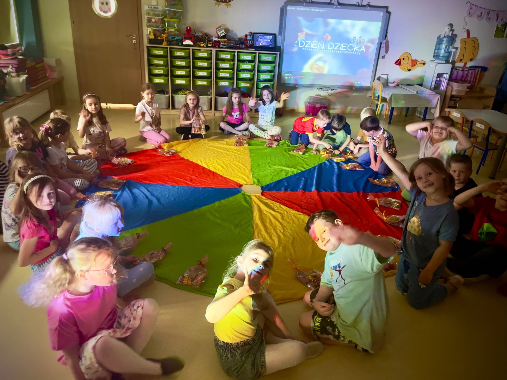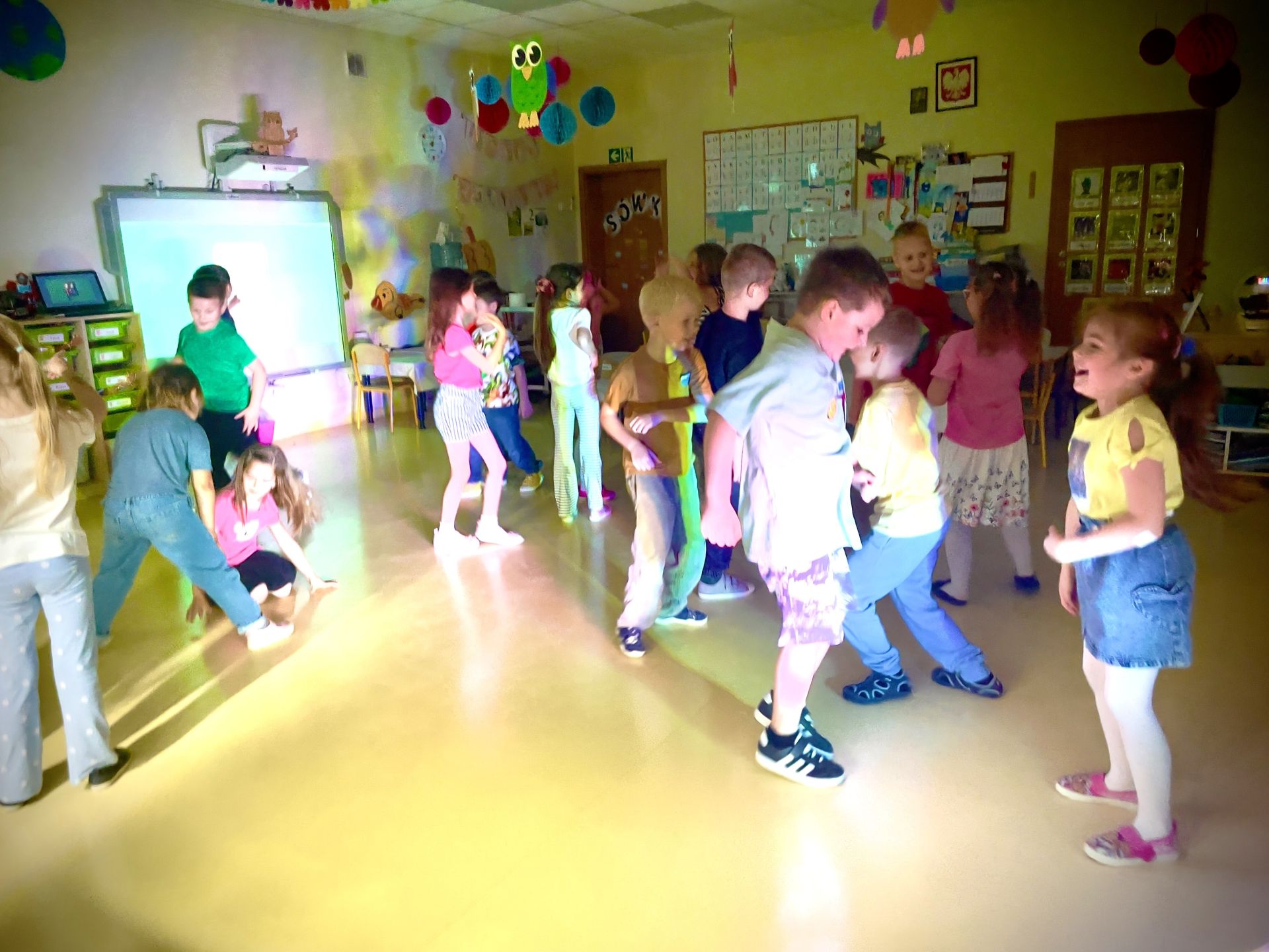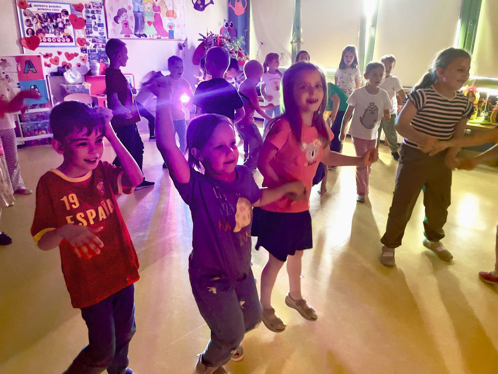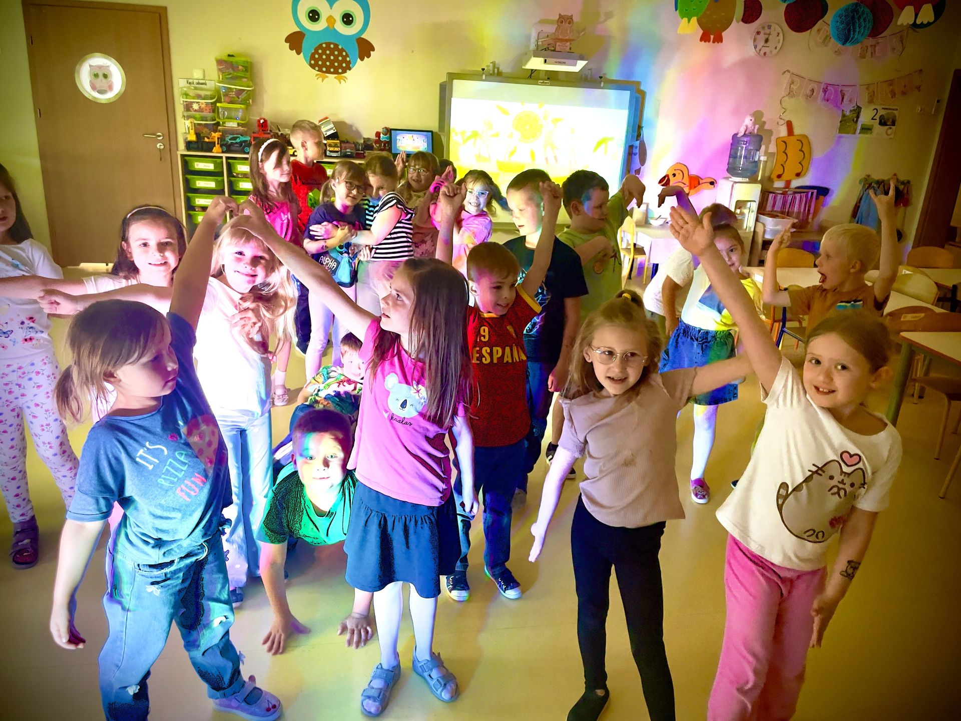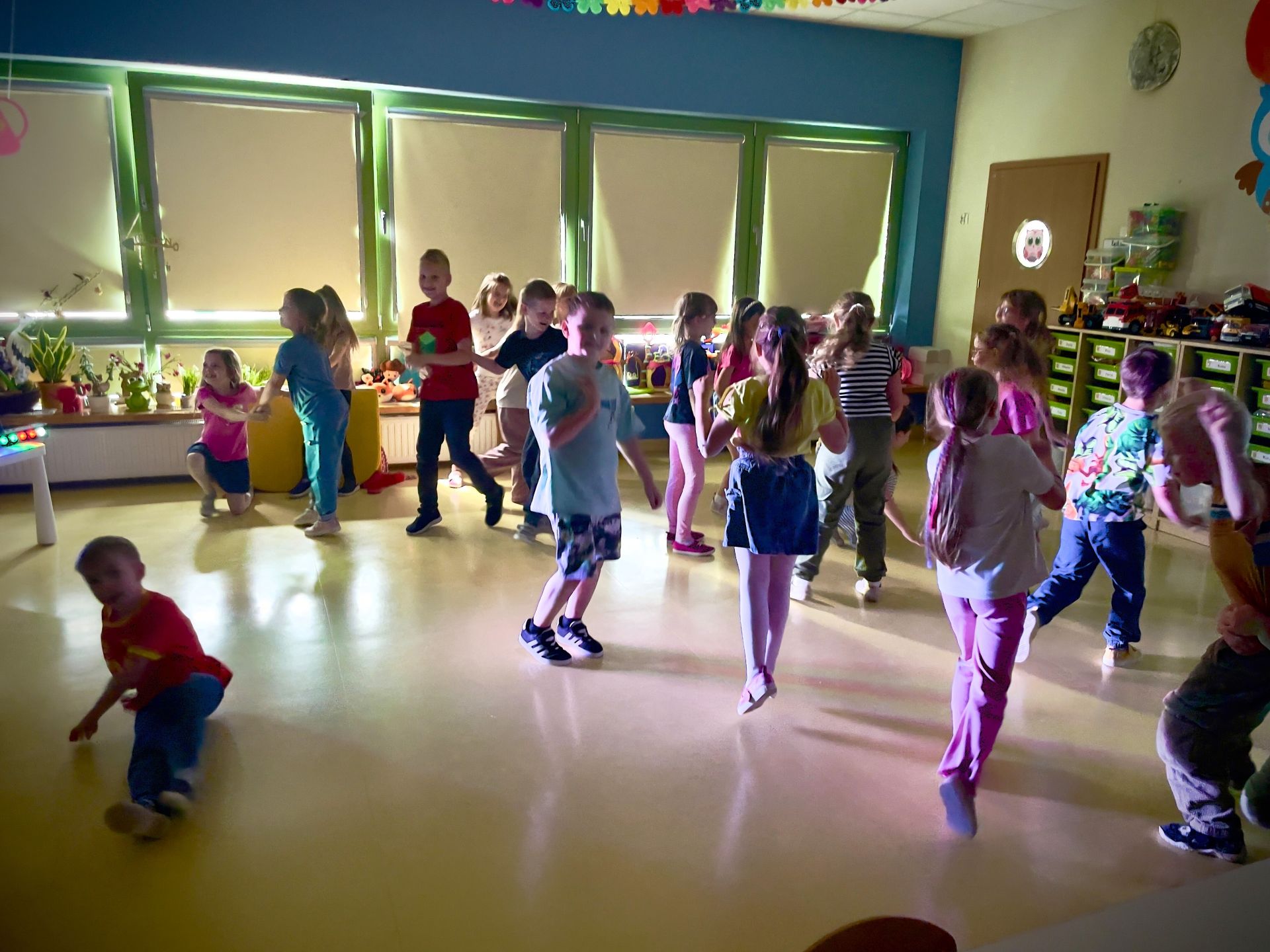 Dnia 2 czerwca 2025 r. świętowaliśmy w naszym przedszkolu Dzień Dziecka. Ten dzień był wyjątkowo kolorowy i radosny. Wszystko za sprawą wielu atrakcji, które czekały na dzieci od samego rana. Wspólnie rozwiązywaliśmy zagadki, śpiewaliśmy, szukaliśmy prezentów, tańczyliśmy tańce disco, puszcaliśmy bańki mydlane oraz jedliśmy lody z truskawkami.