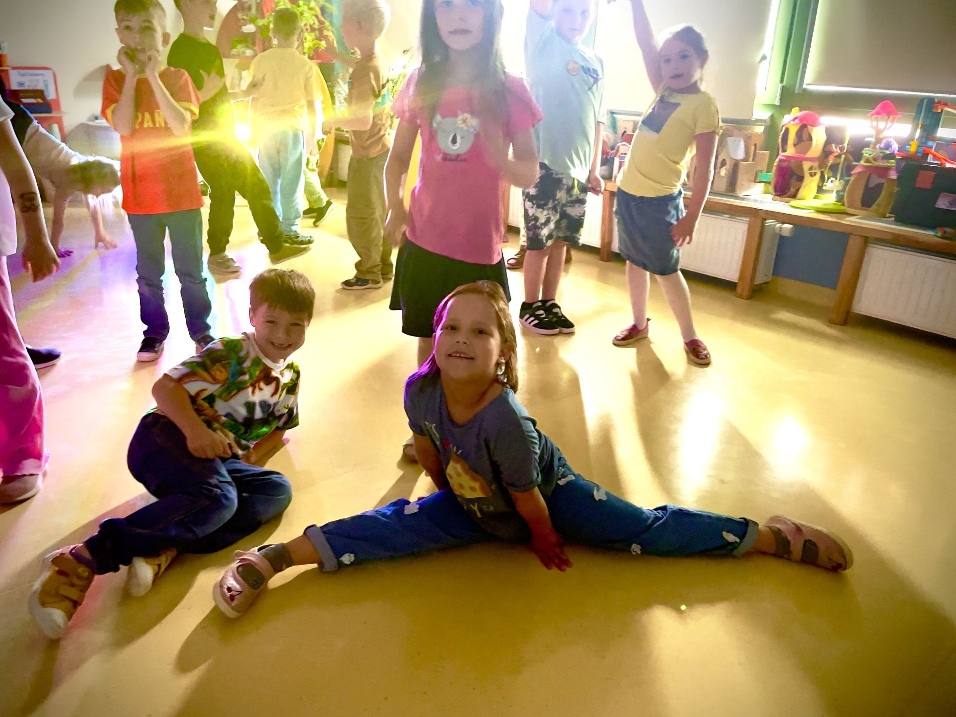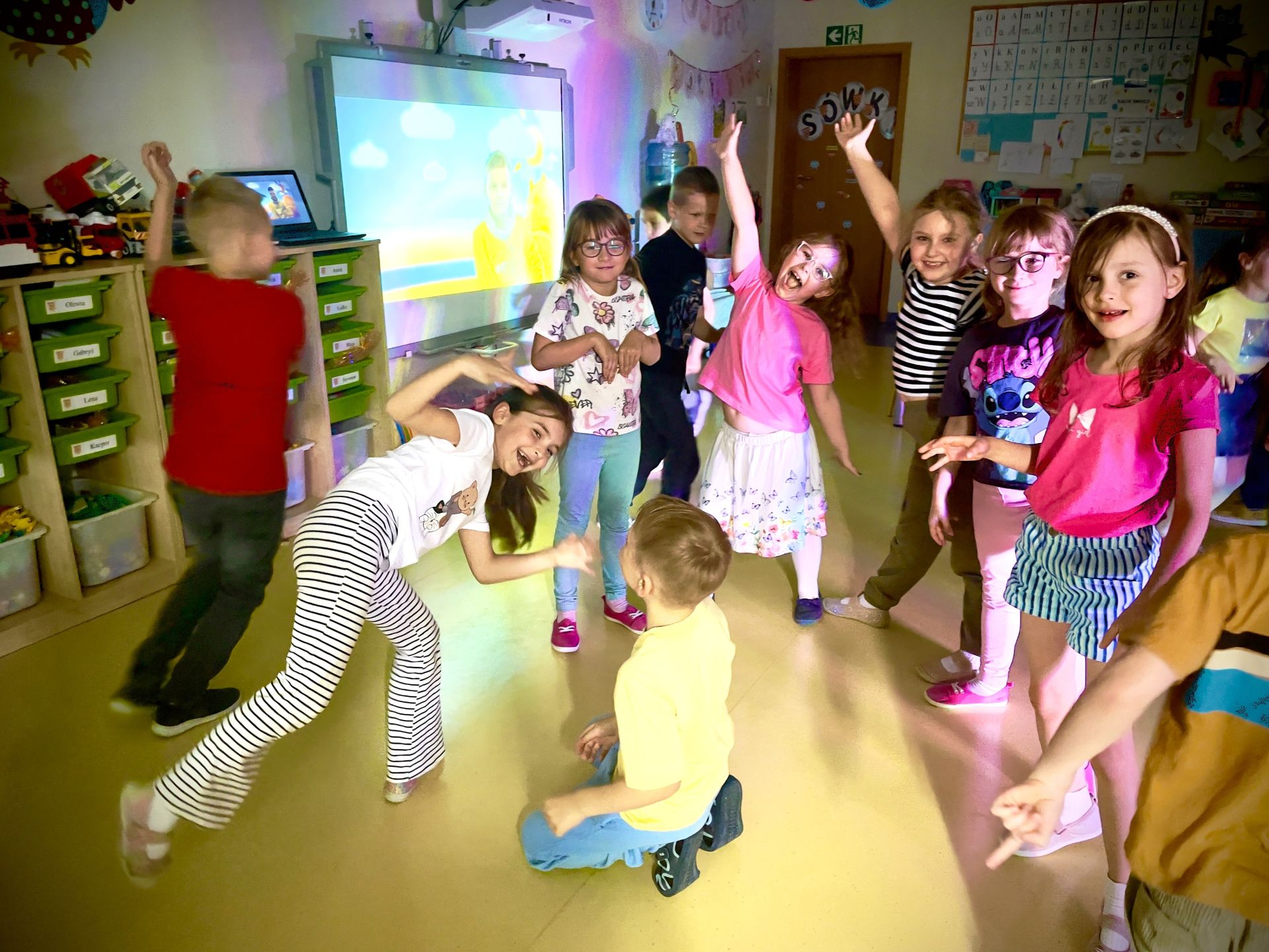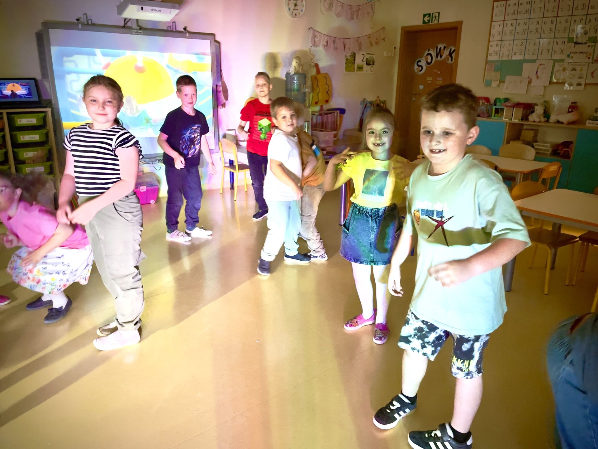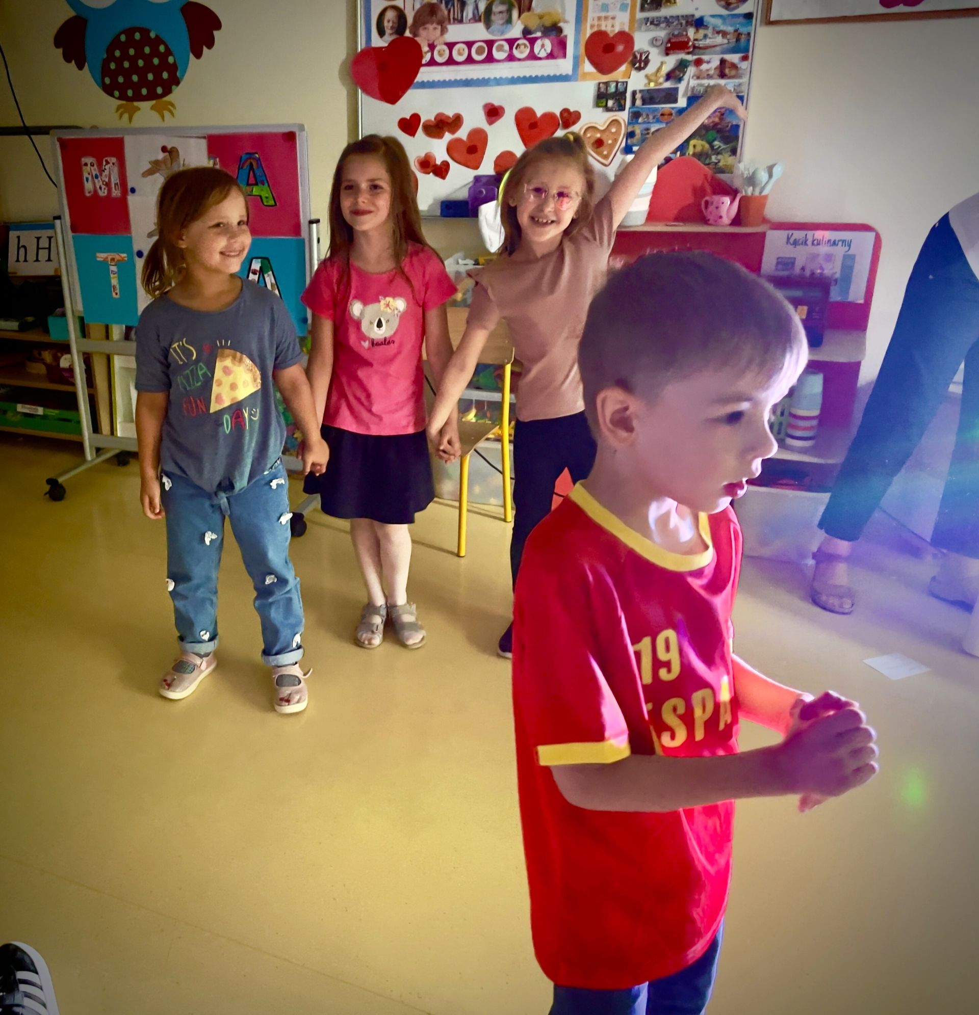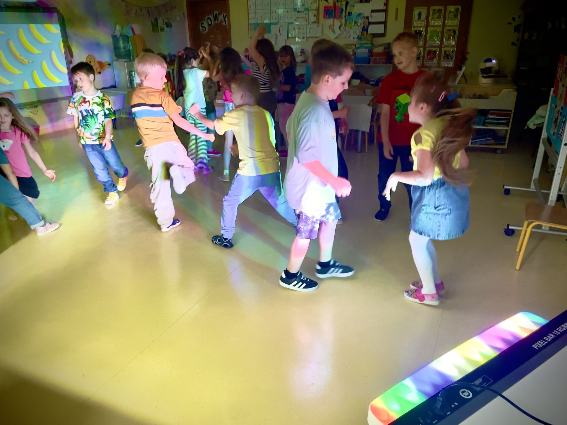 Dnia 2 czerwca 2025 r. świętowaliśmy w naszym przedszkolu Dzień Dziecka. Ten dzień był wyjątkowo kolorowy i radosny. Wszystko za sprawą wielu atrakcji, które czekały na dzieci od samego rana. Wspólnie rozwiązywaliśmy zagadki, śpiewaliśmy, szukaliśmy prezentów, tańczyliśmy tańce disco, puszcaliśmy bańki mydlane oraz jedliśmy lody z truskawkami.