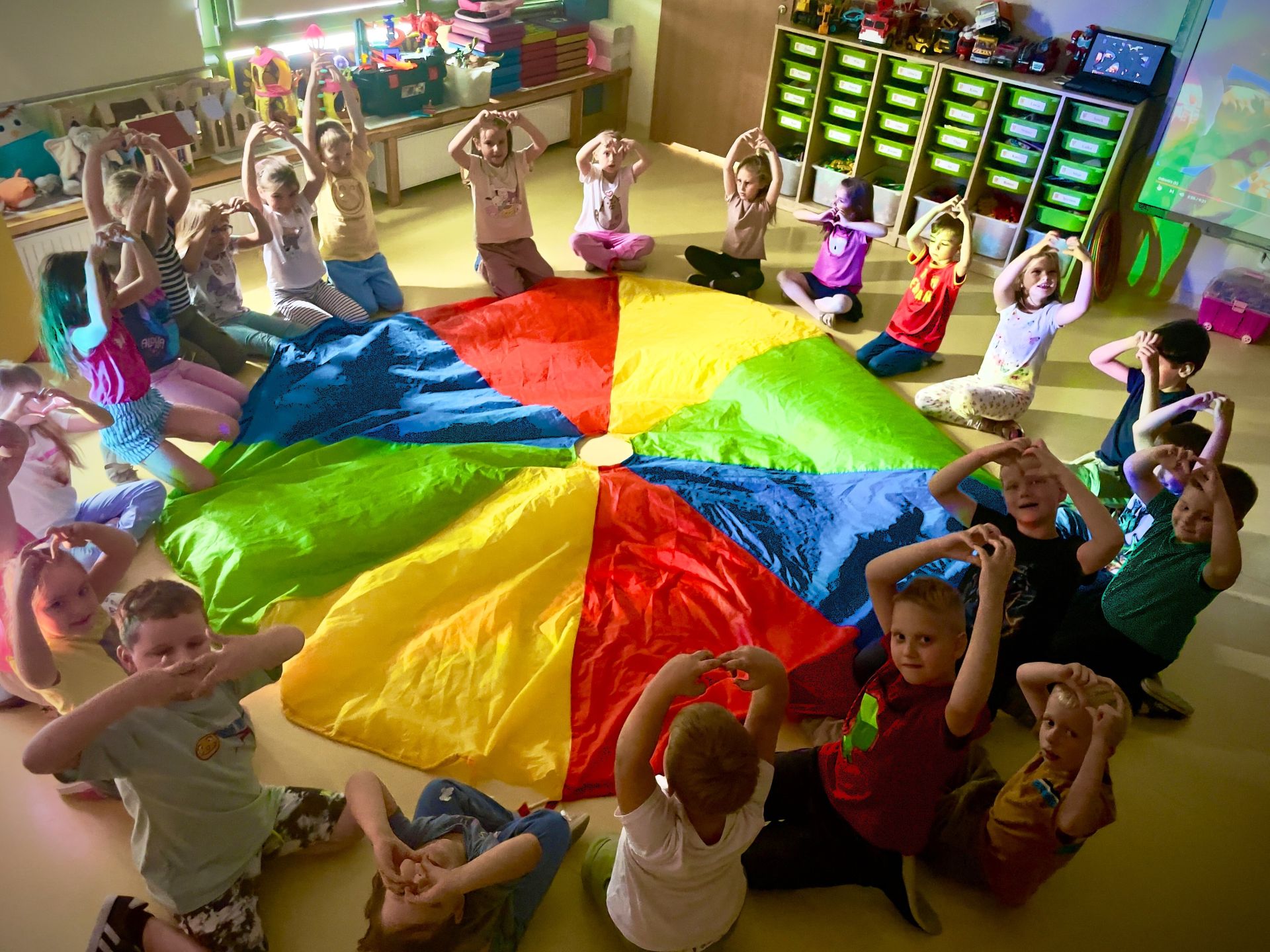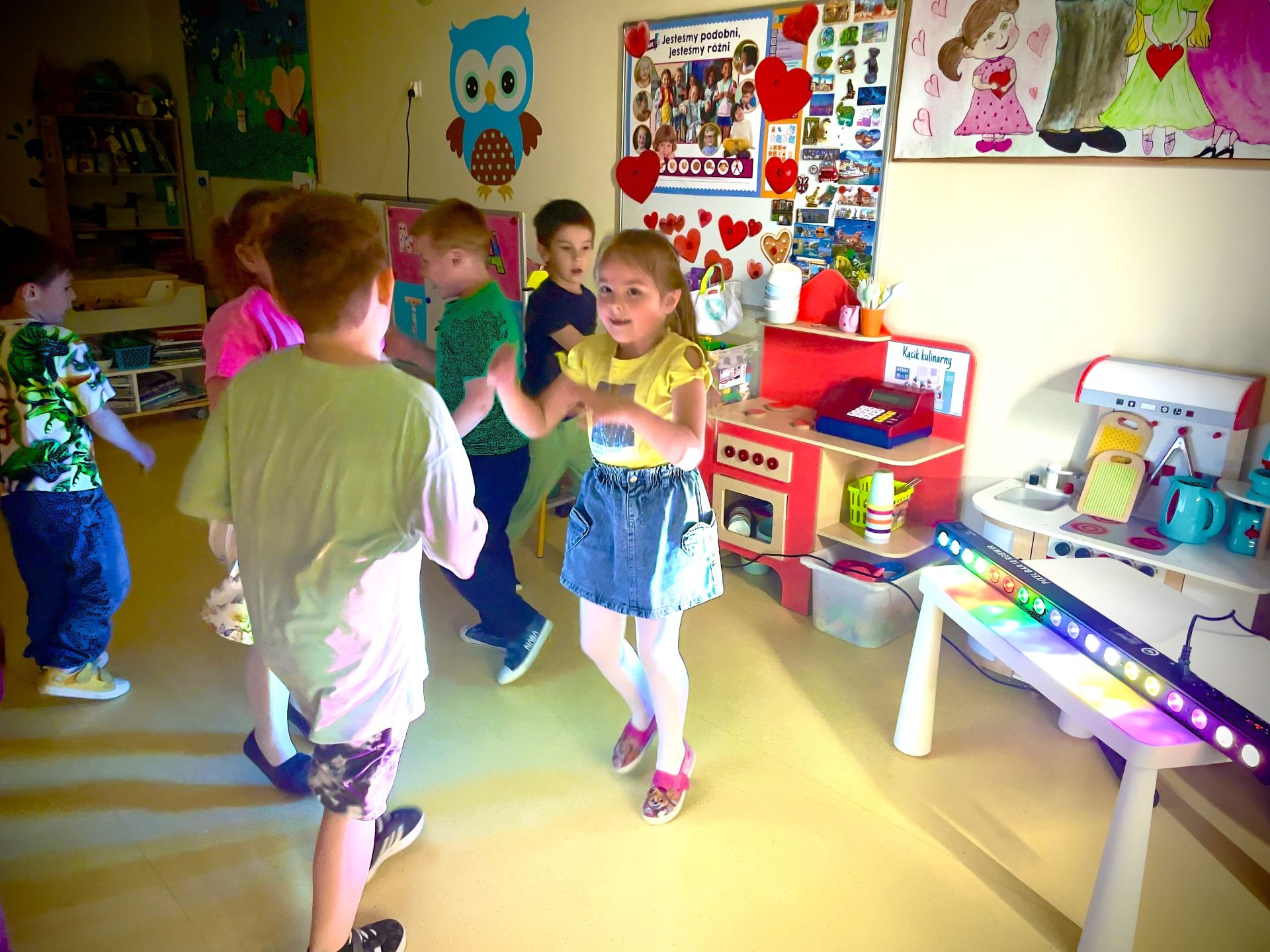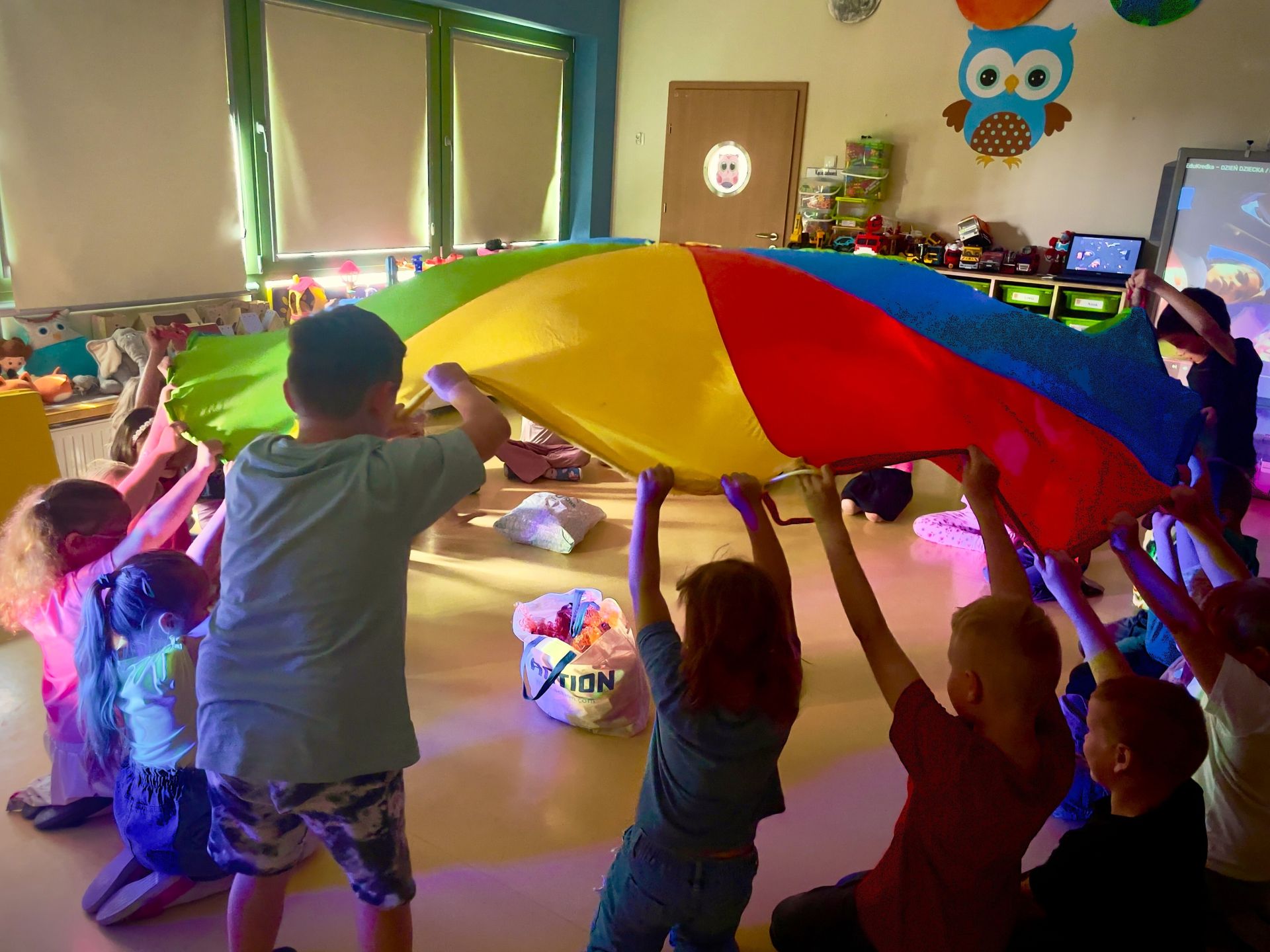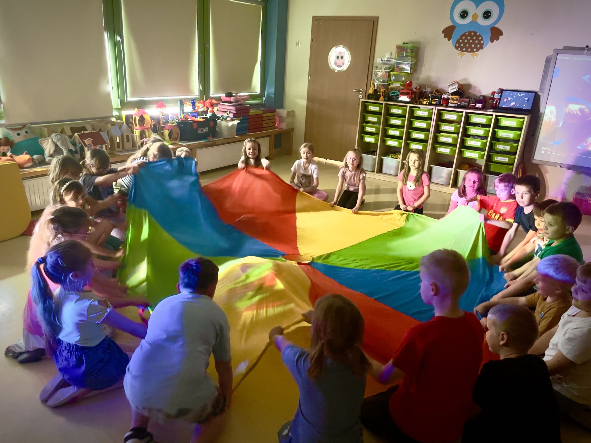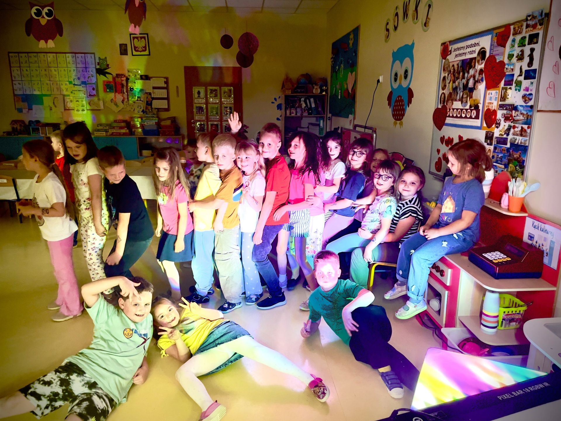 Dnia 2 czerwca 2025 r. świętowaliśmy w naszym przedszkolu Dzień Dziecka. Ten dzień był wyjątkowo kolorowy i radosny. Wszystko za sprawą wielu atrakcji, które czekały na dzieci od samego rana. Wspólnie rozwiązywaliśmy zagadki, śpiewaliśmy, szukaliśmy prezentów, tańczyliśmy tańce disco, puszcaliśmy bańki mydlane oraz jedliśmy lody z truskawkami.