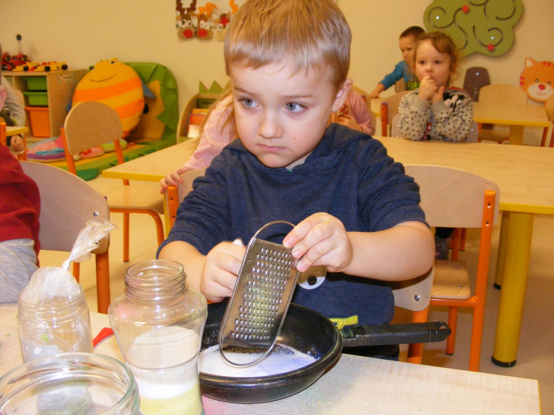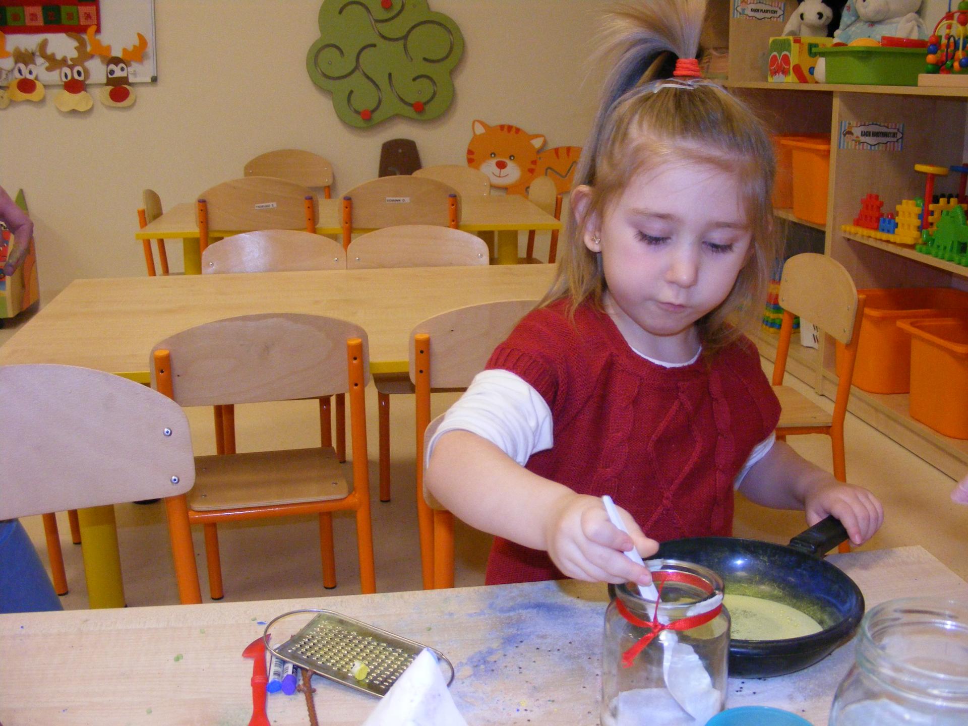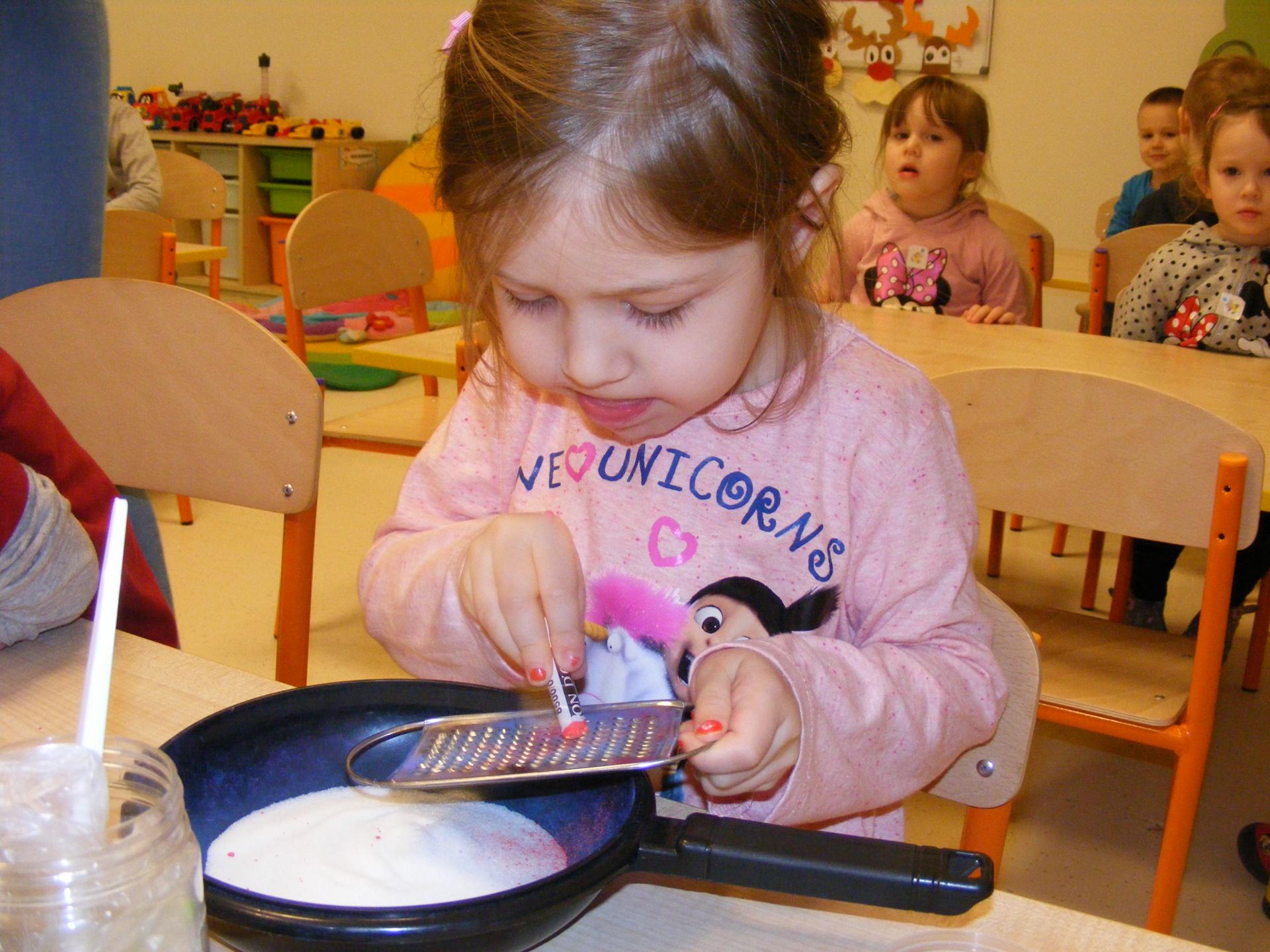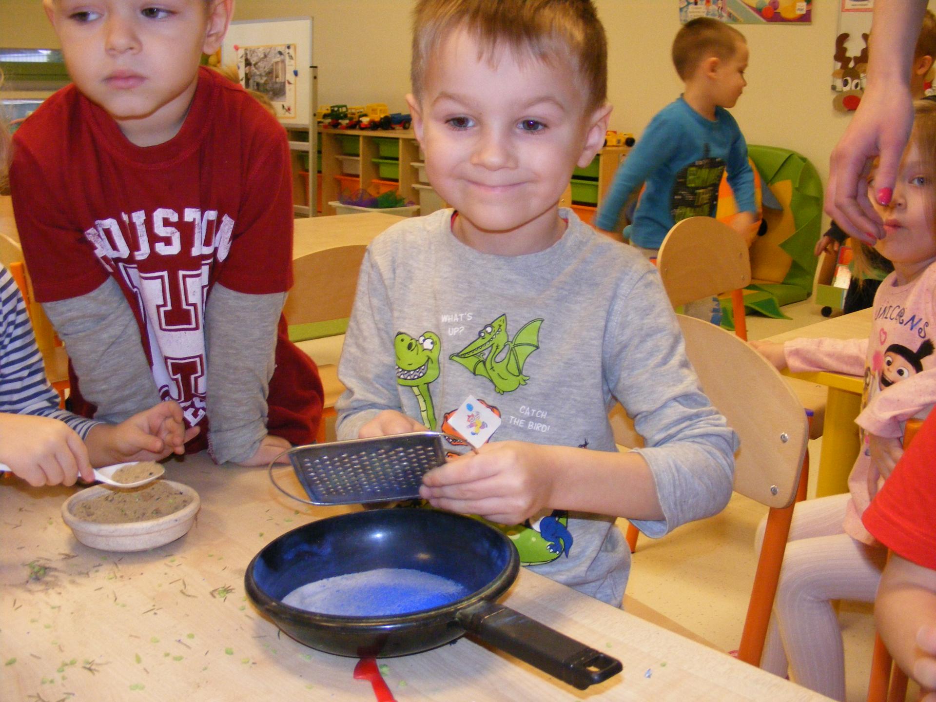 Dziś, 10 stycznia badaliśmy właściwości soli kuchennej. Barwiliśmy sól na tęczowe kolory i stworzyliśmy kompozycje w słoikach do naszego kącika badawczego.