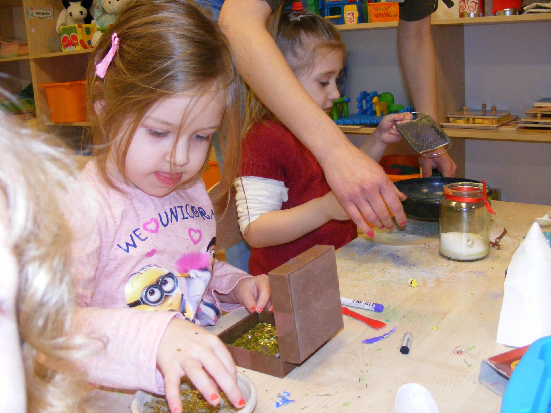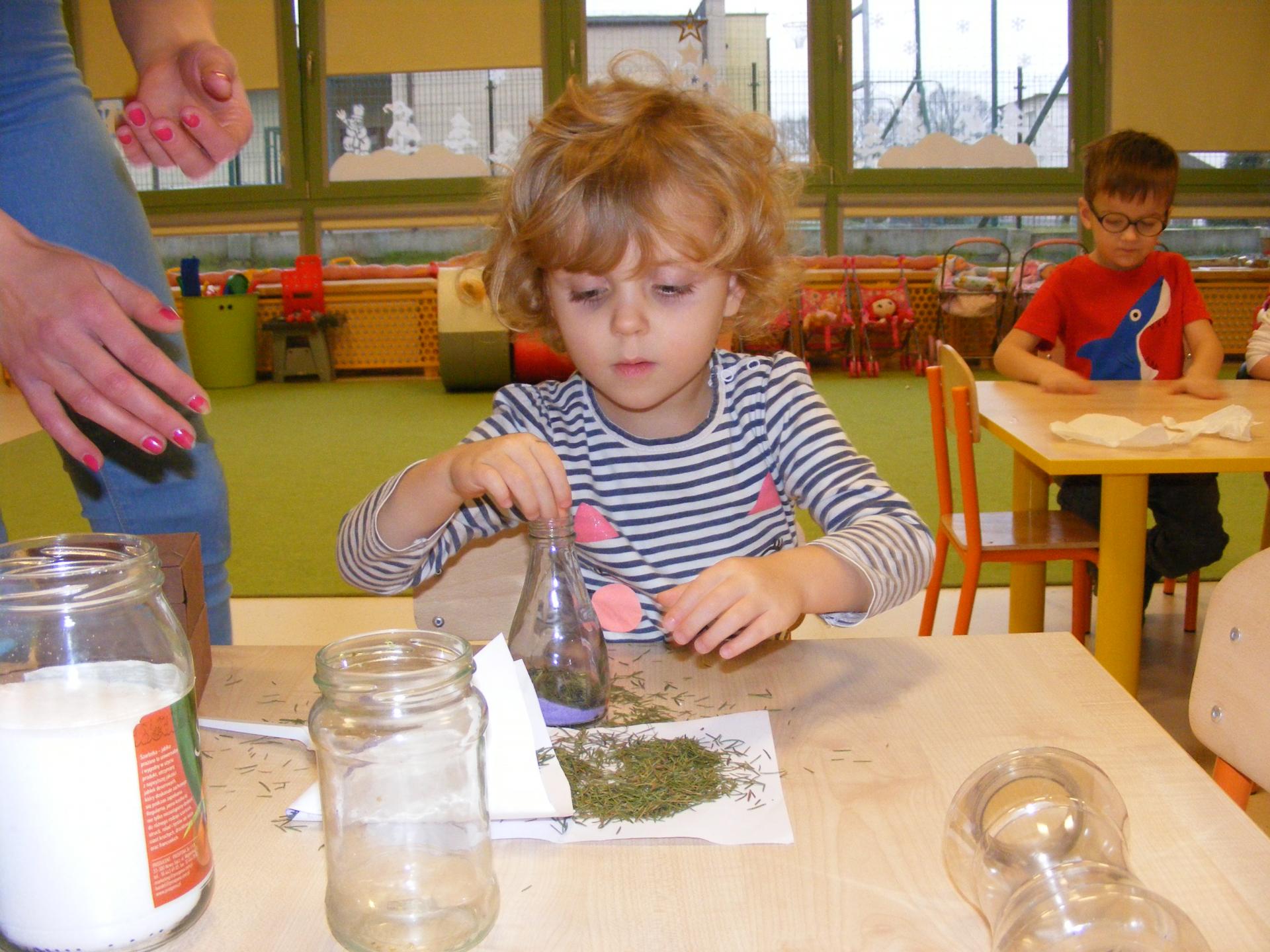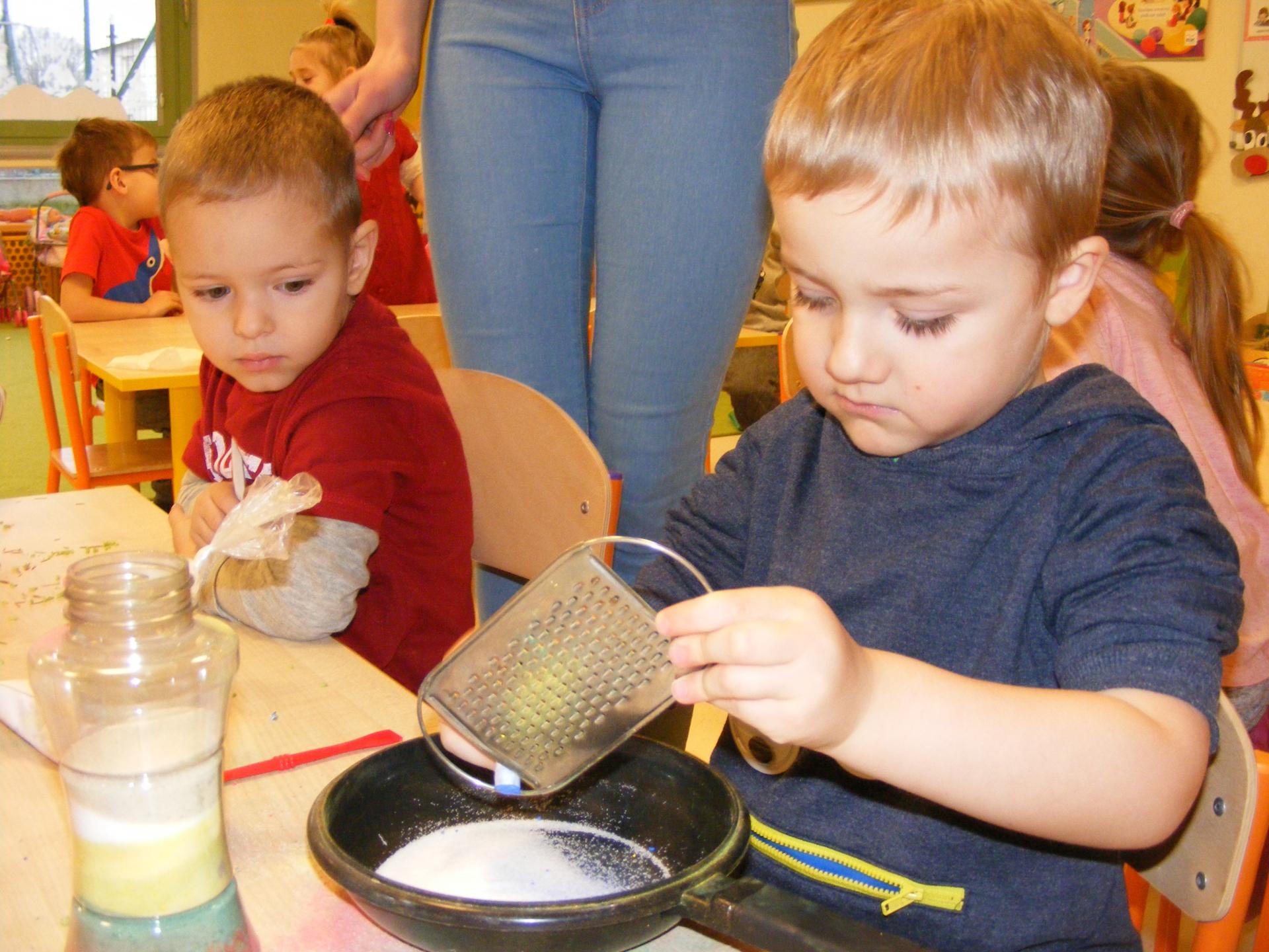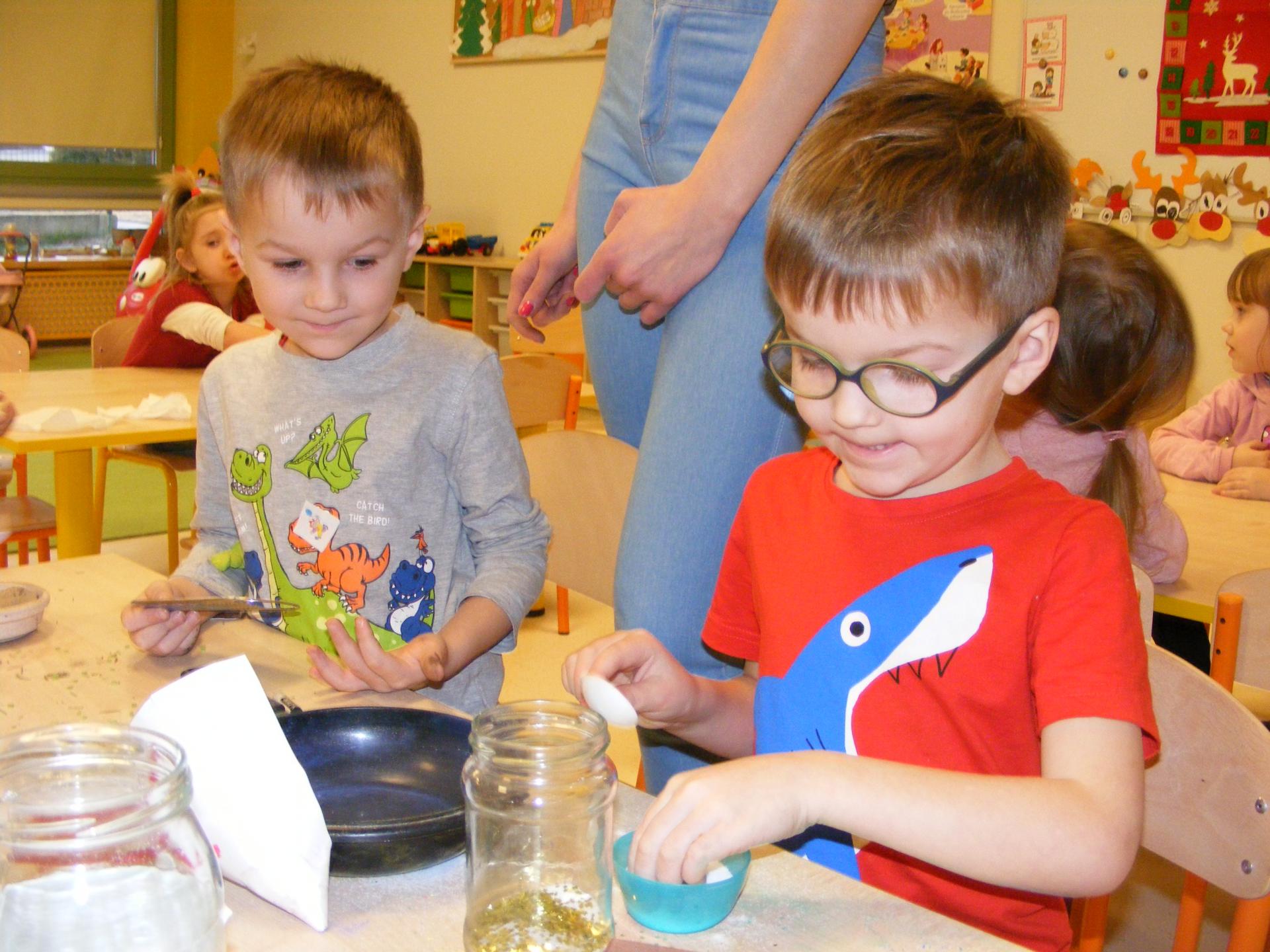 Dziś, 10 stycznia badaliśmy właściwości soli kuchennej. Barwiliśmy sól na tęczowe kolory i stworzyliśmy kompozycje w słoikach do naszego kącika badawczego.