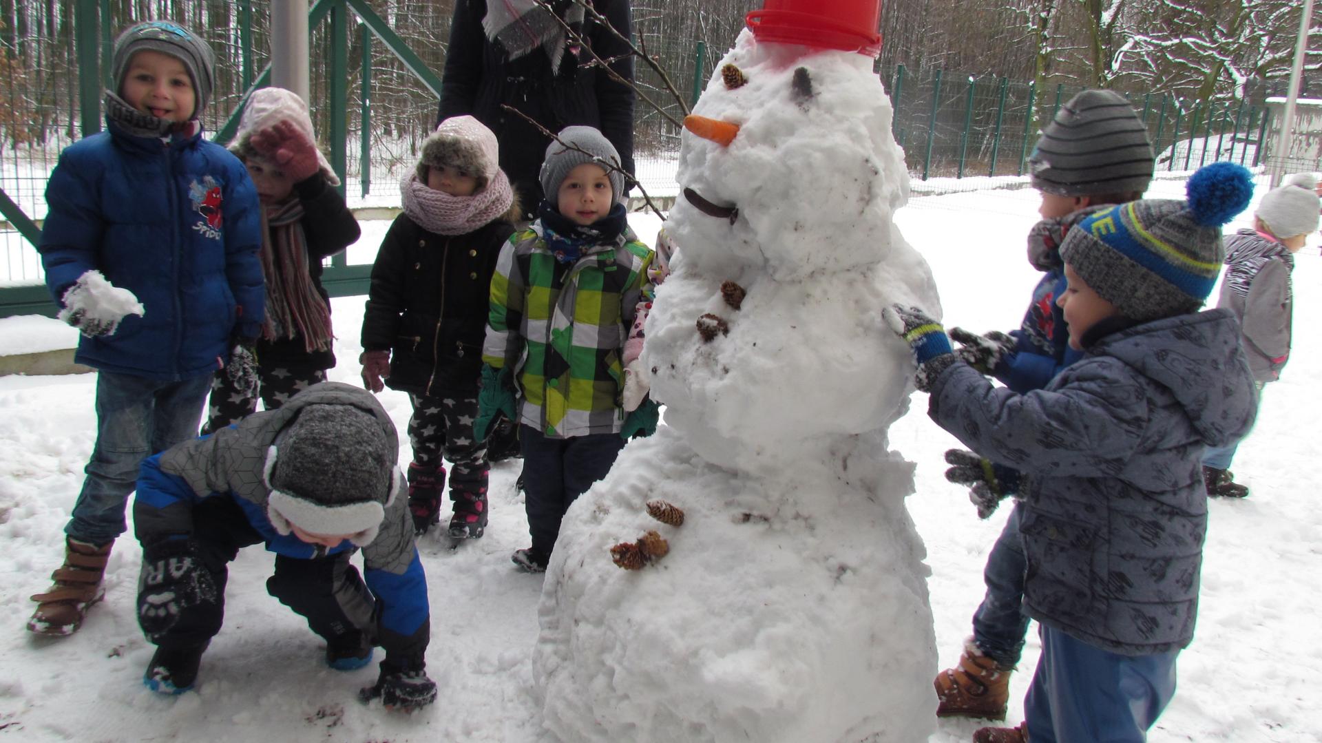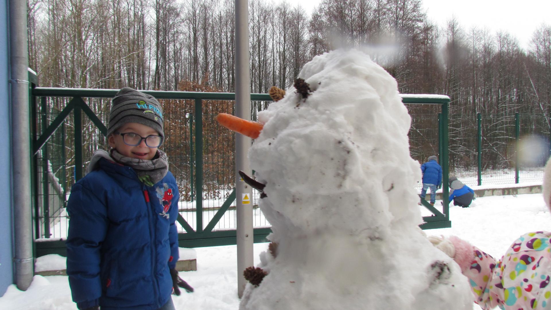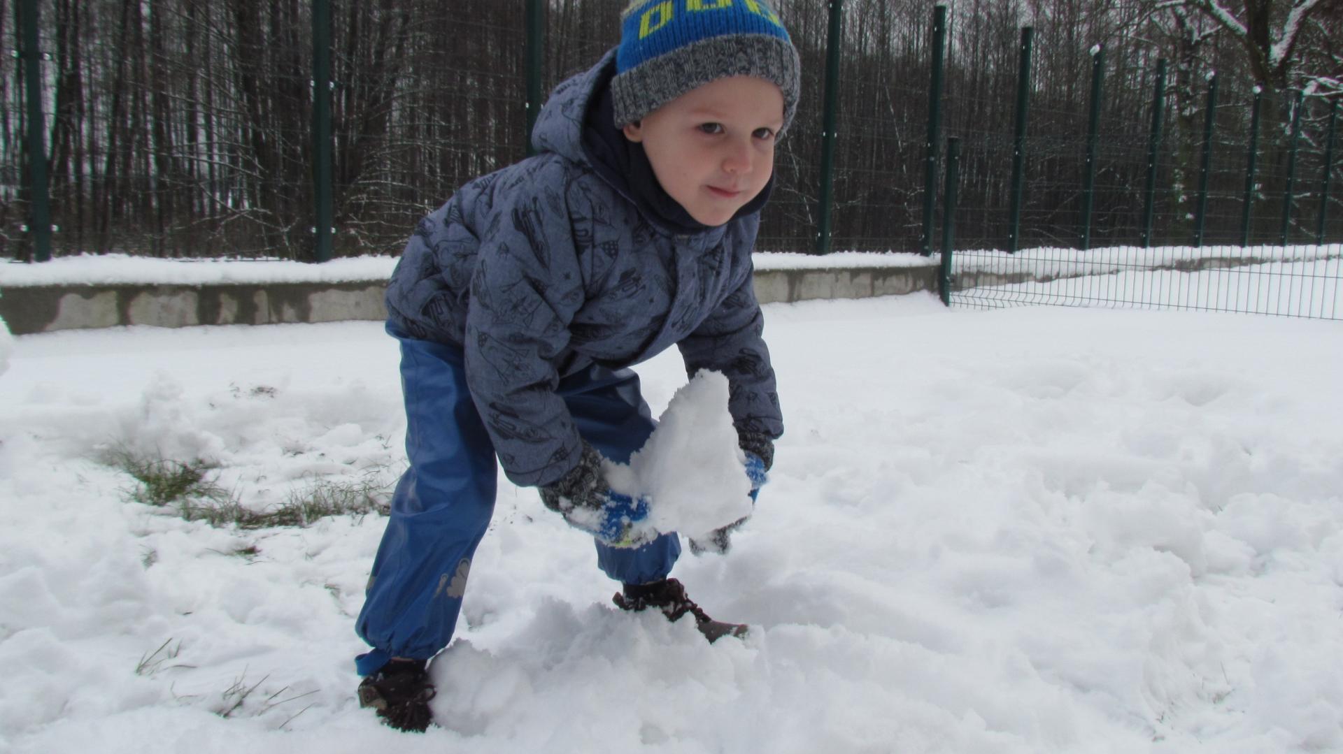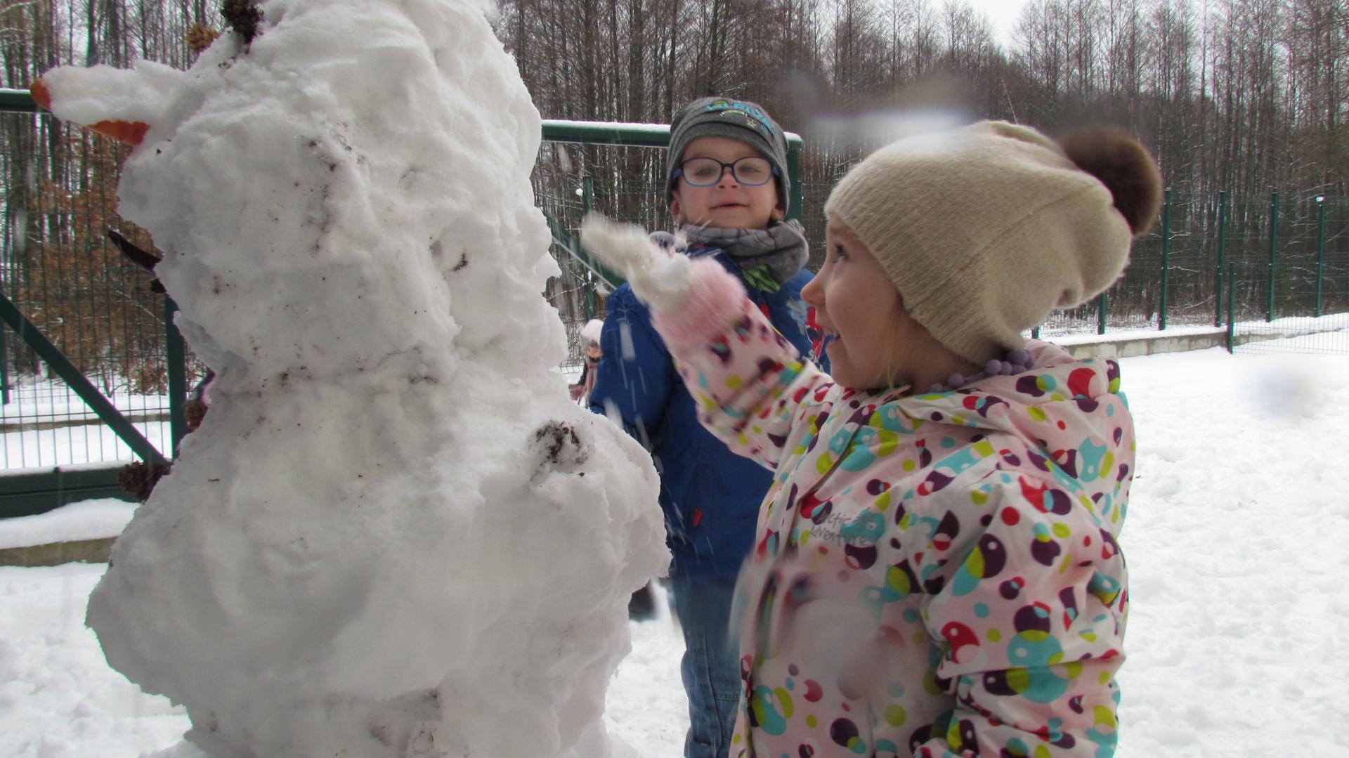 Nareszcie spadł długo oczekiwany przez dzieci śnieg!!! Od samego rana wybraliśmy się na nasze podwórko przedszkolene. Ulepiliśmy pięknego bałwana a potem odbyła się bitwa na śnieżki. Ale była zabawa!