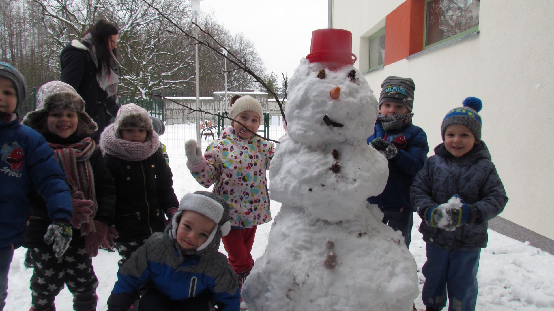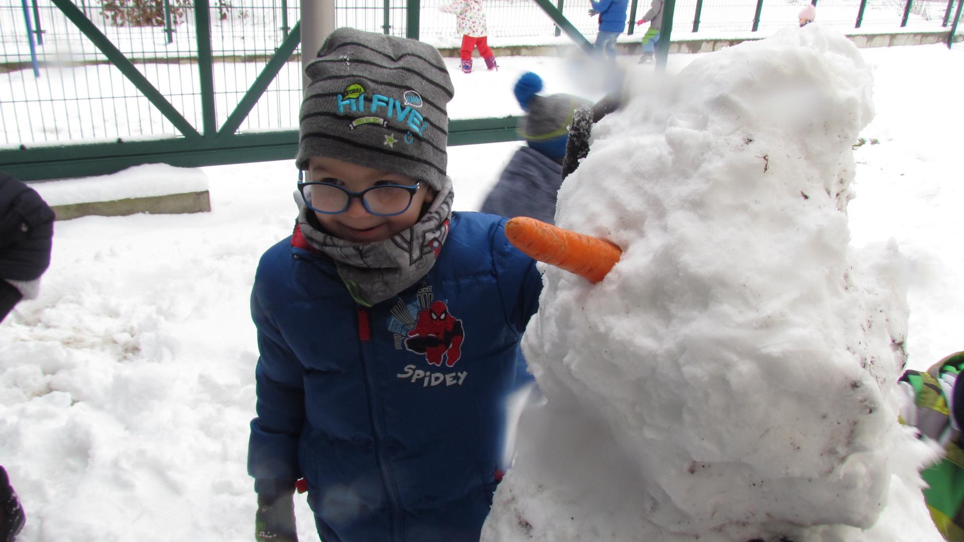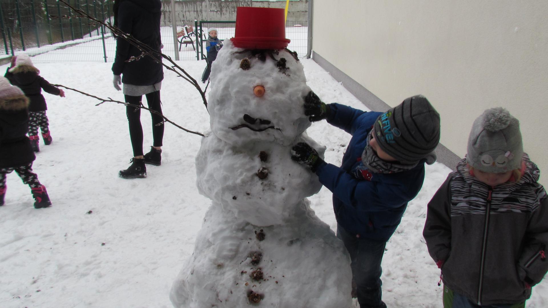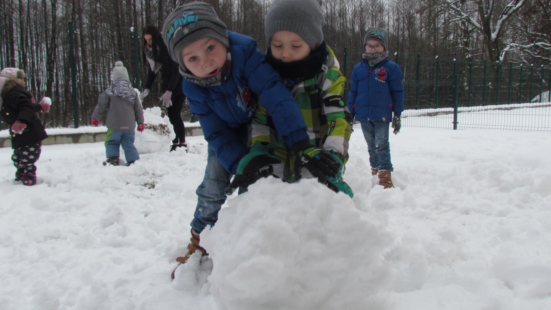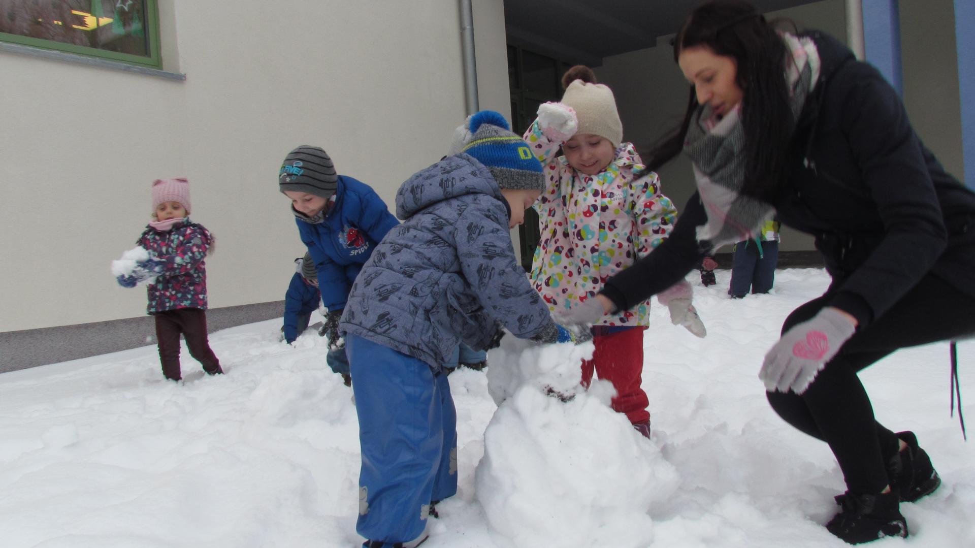 Nareszcie spadł długo oczekiwany przez dzieci śnieg!!! Od samego rana wybraliśmy się na nasze podwórko przedszkolene. Ulepiliśmy pięknego bałwana a potem odbyła się bitwa na śnieżki. Ale była zabawa!