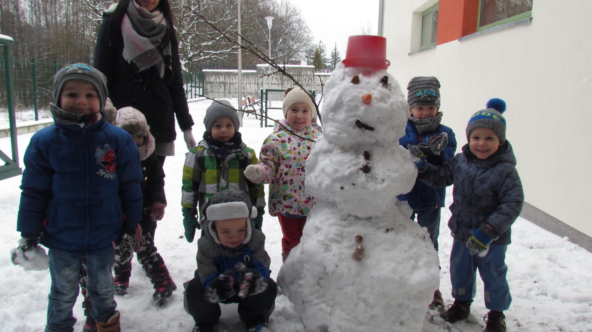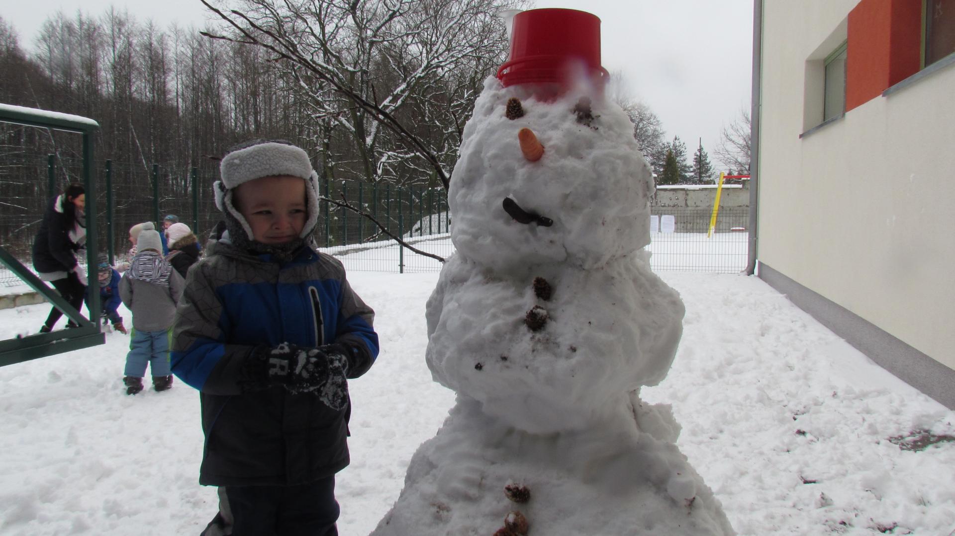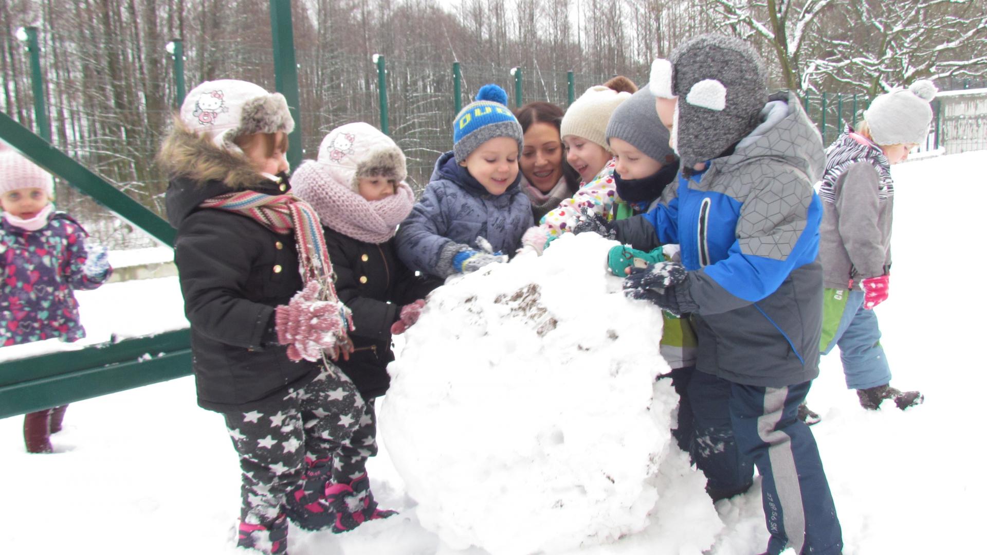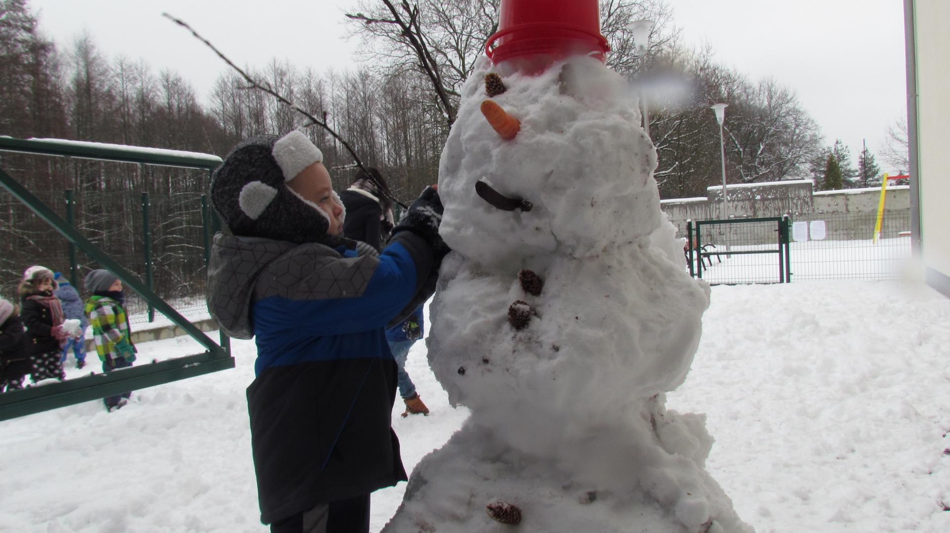 Nareszcie spadł długo oczekiwany przez dzieci śnieg!!! Od samego rana wybraliśmy się na nasze podwórko przedszkolene. Ulepiliśmy pięknego bałwana a potem odbyła się bitwa na śnieżki. Ale była zabawa!