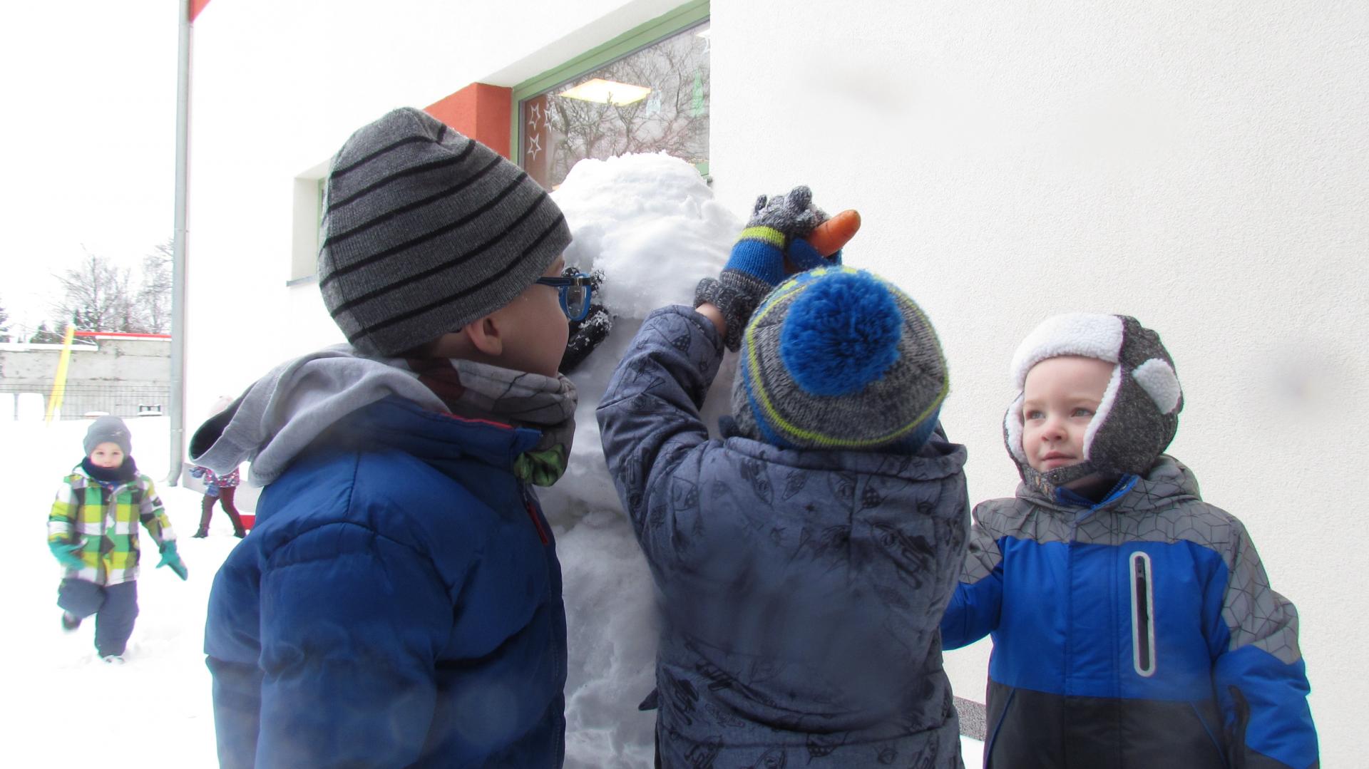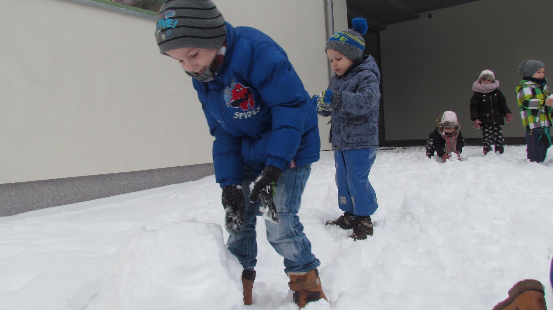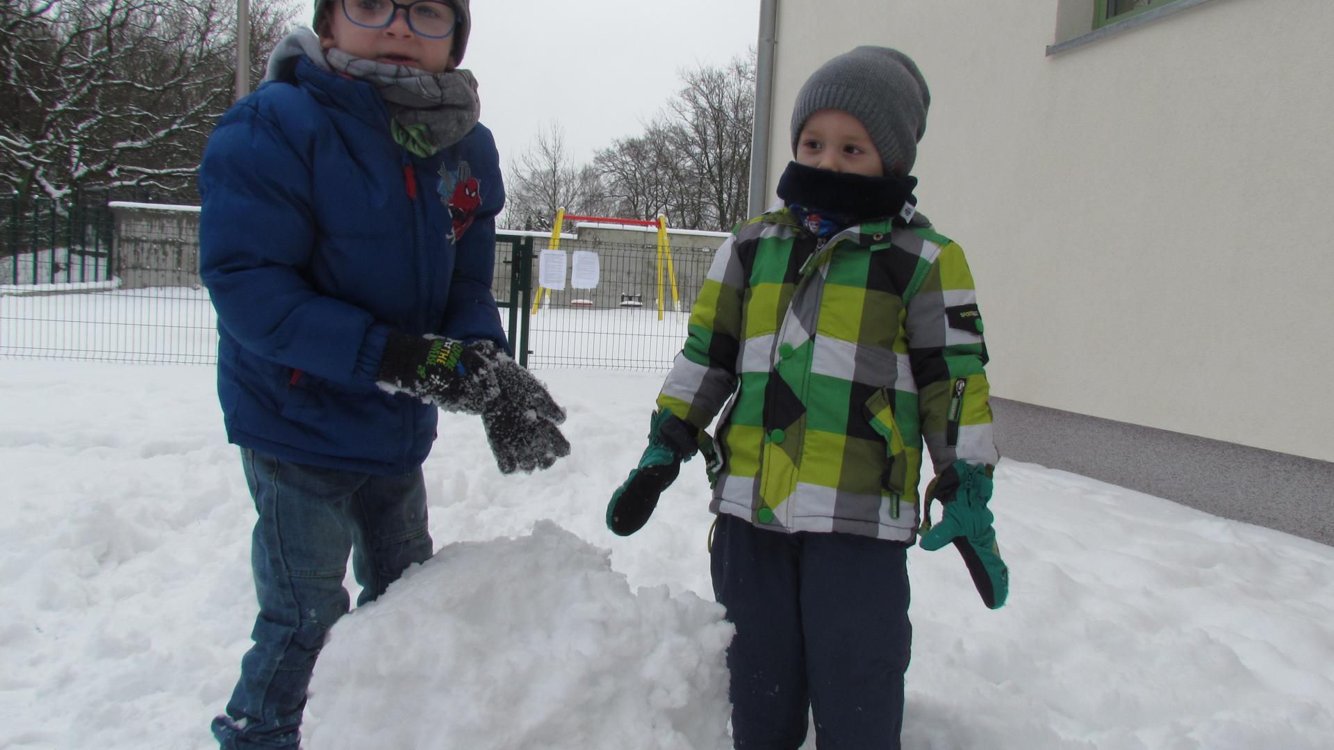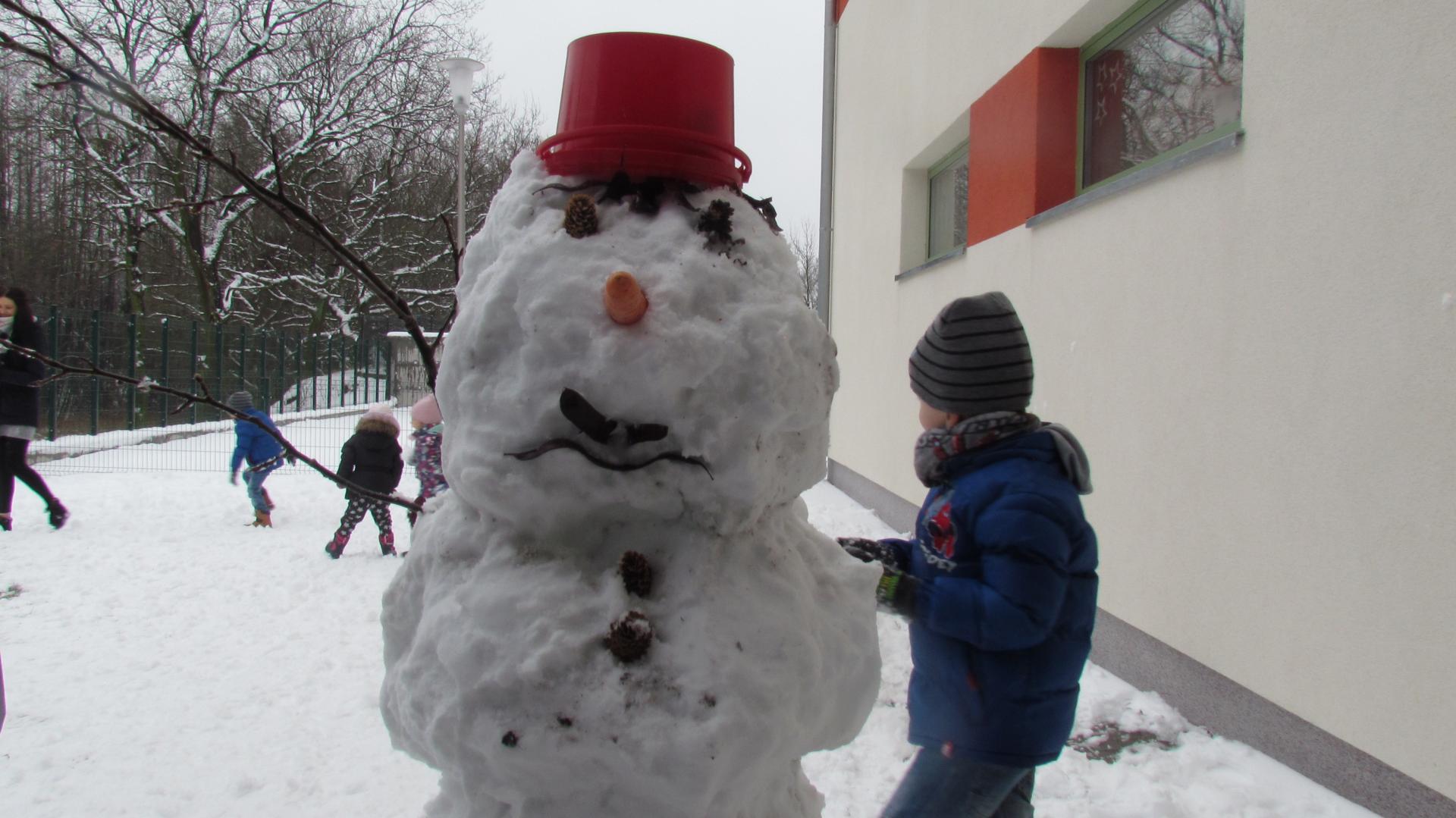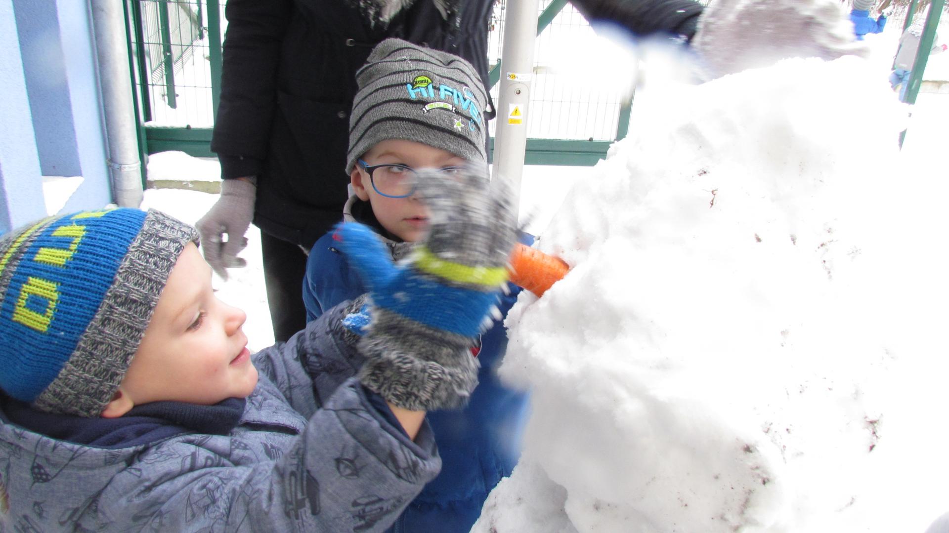 Nareszcie spadł długo oczekiwany przez dzieci śnieg!!! Od samego rana wybraliśmy się na nasze podwórko przedszkolene. Ulepiliśmy pięknego bałwana a potem odbyła się bitwa na śnieżki. Ale była zabawa!