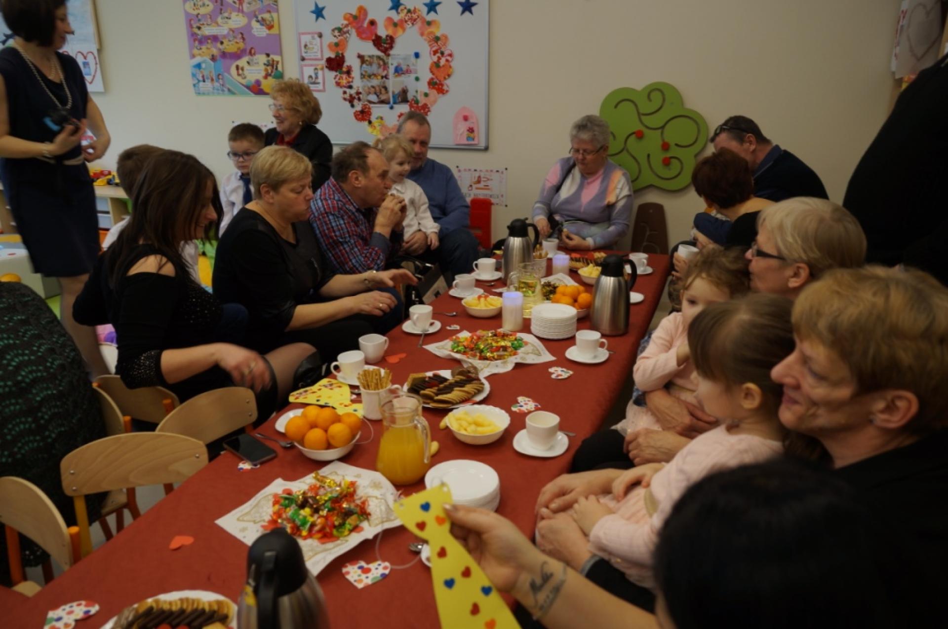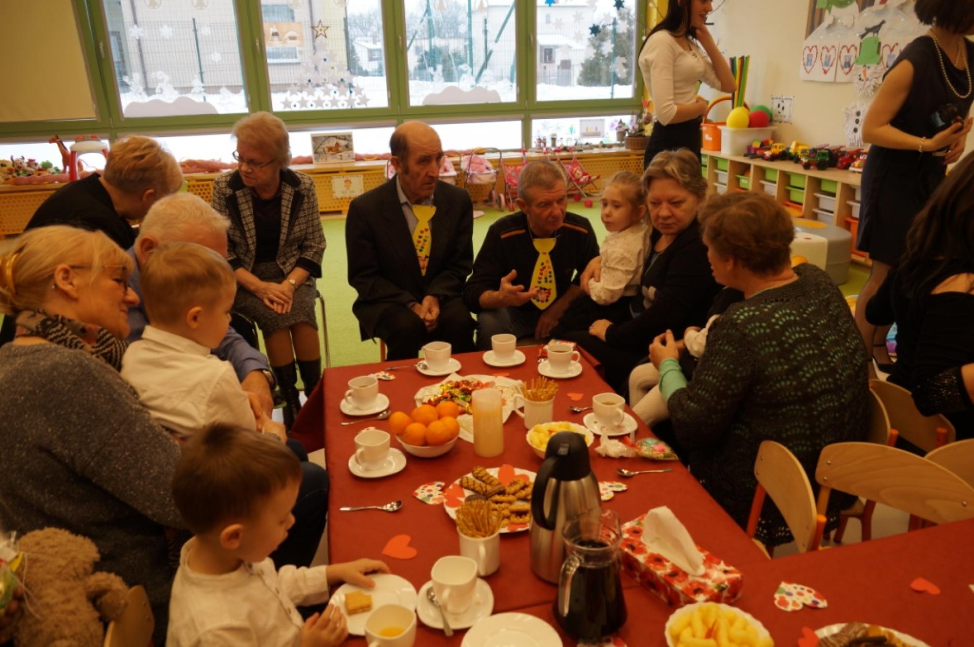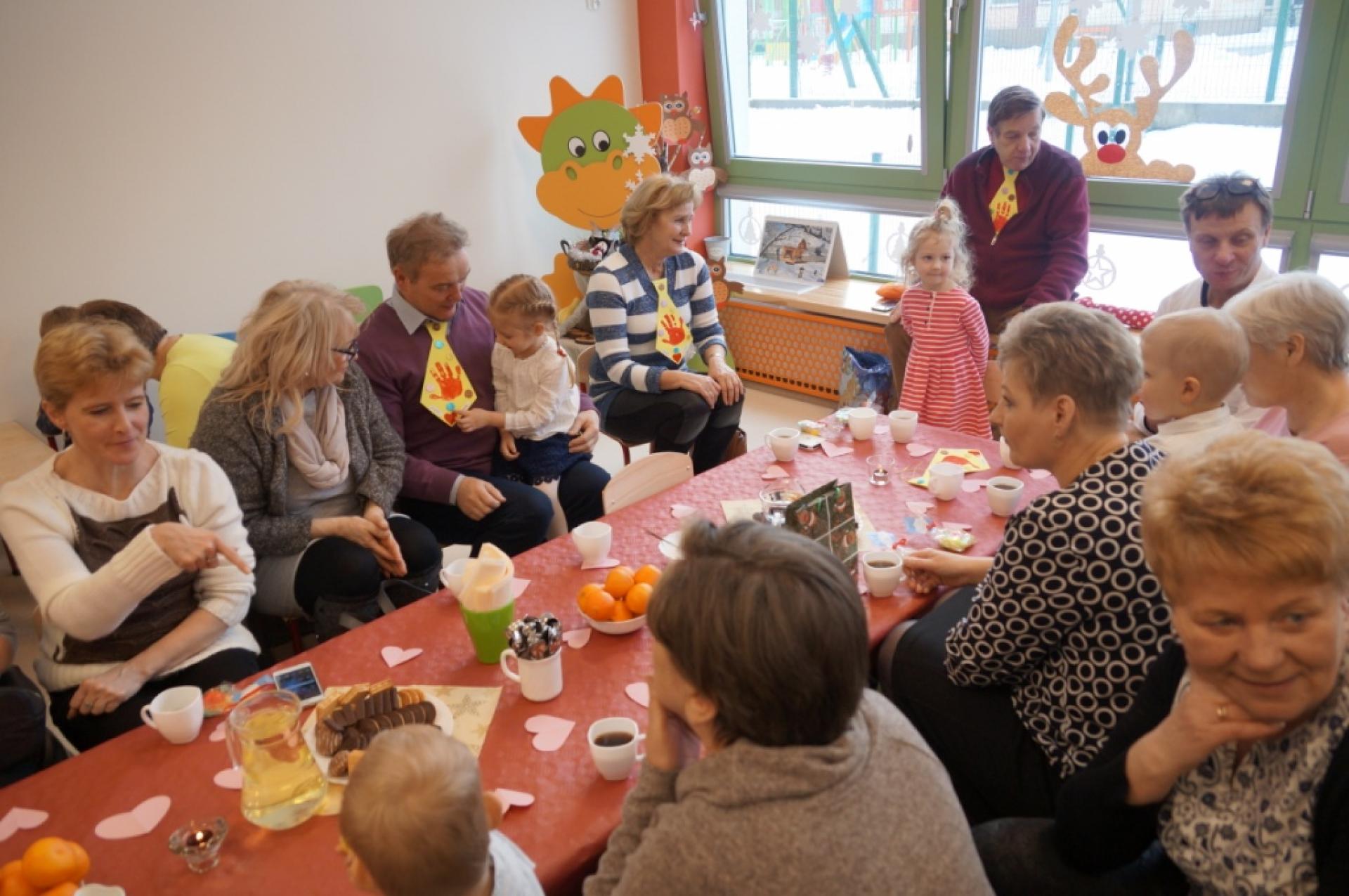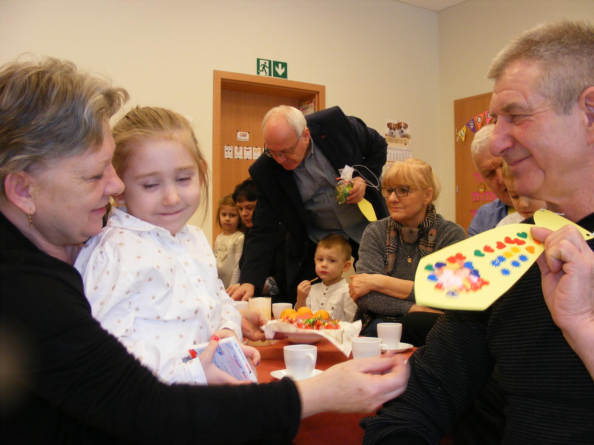 19 stycznia 2018r. zaprosiliśmy nasze ukochane Babcie i najkochańszych Dziadków do naszego przedszkola. Po programie artystycznym zaprosiliśmy naszych gości na słodki poczęstunek. Potem obdarowaliśmy Dziadków własnoręcznie wykonanymi upominkami. Babcie dostały pachnące mydełka, a Dziadkowie kolorowy krawat ze zdjęciem wnuka lub wnuczki. Nie zabrakło też wspólnych tańców i zabaw przy muzyce.