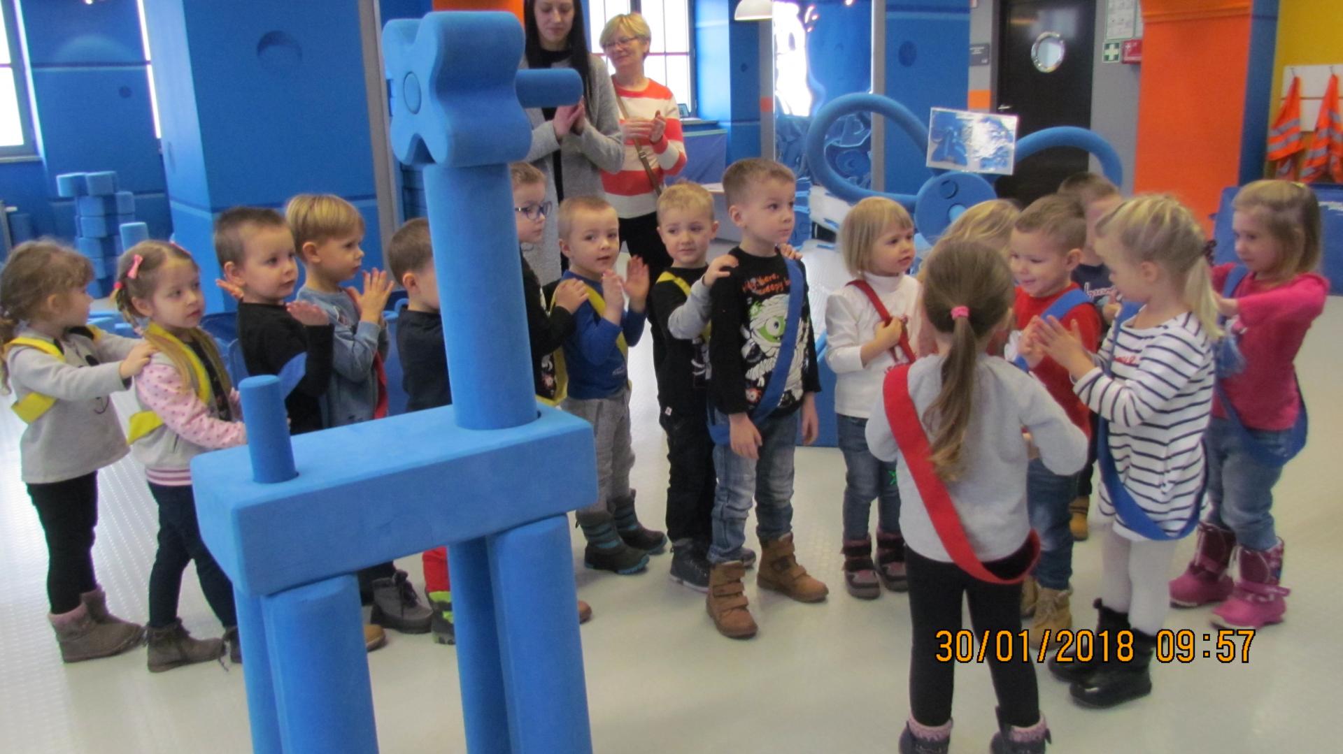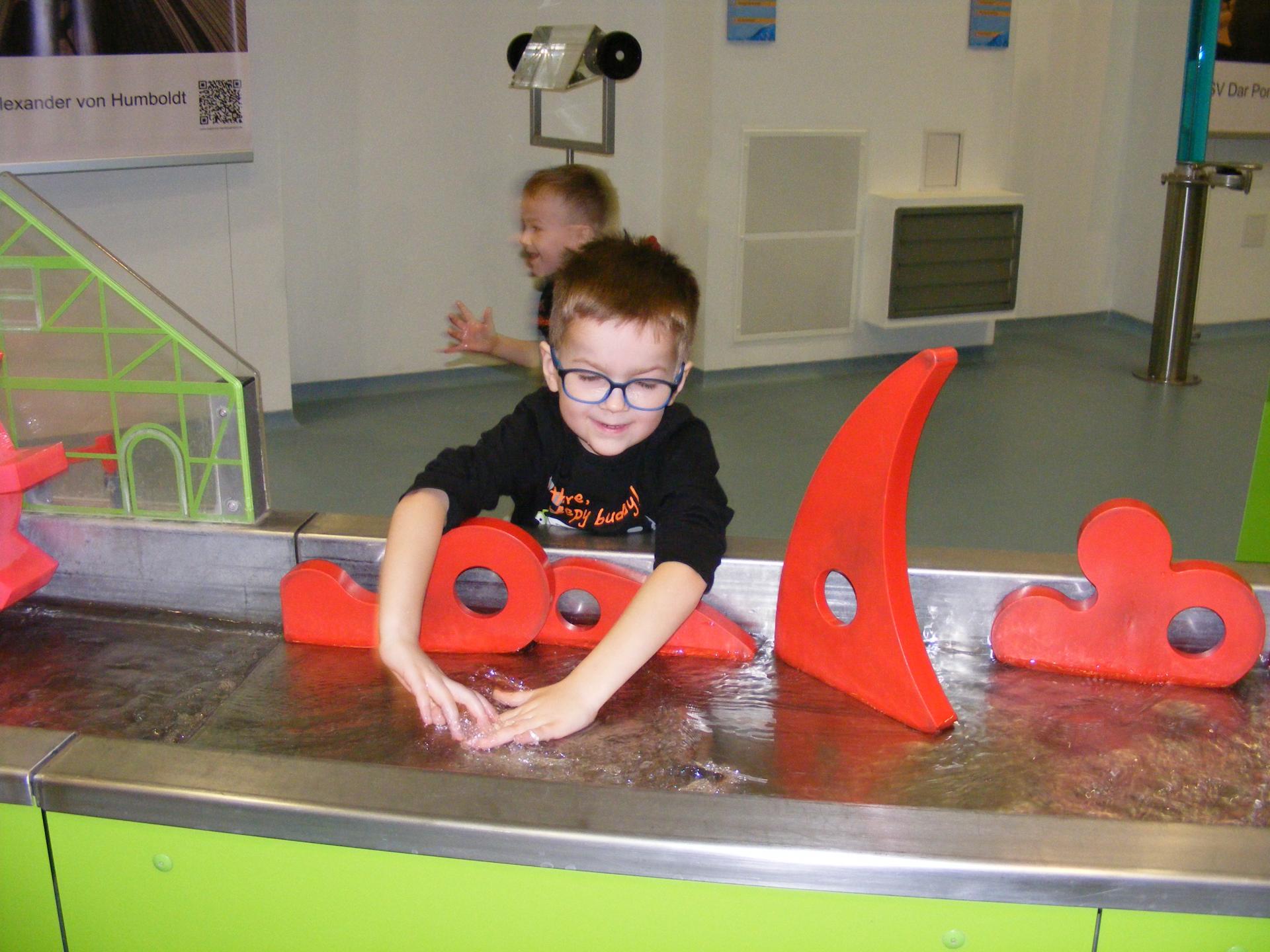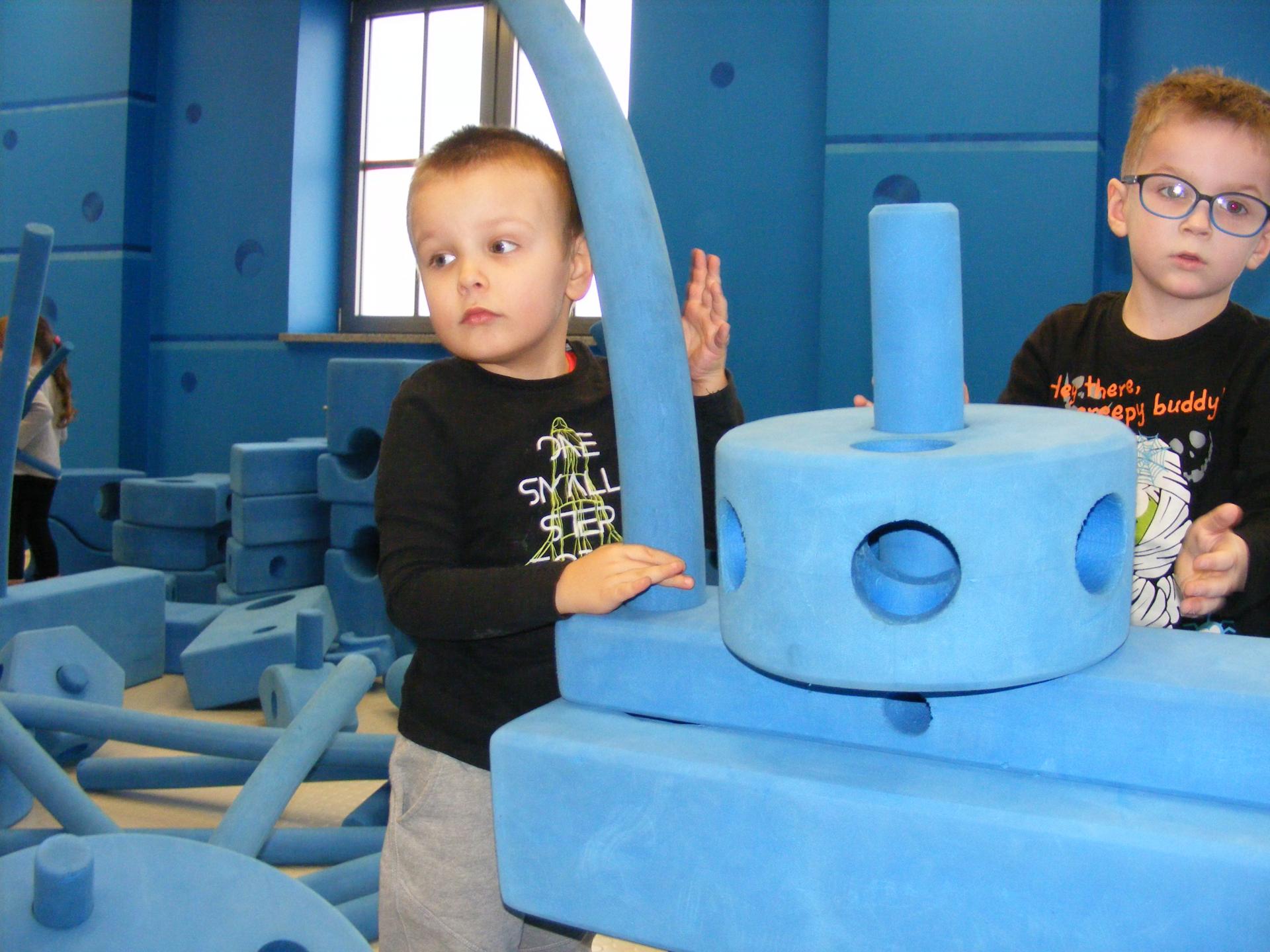 Z niebieskich klocków Imagination Playground zbudowaliśmy słonia, żyrafę i pingwina. Potem odwiedziliśmy wystawy stałe: Rzeka, przeŻycie, i O obrotach. Najwięcej frajdy mieliśmy podczas zabaw w rwącej rzece, niektórzy mokrzy po pachy, ale świetnie się bawiący nie chcieli wracać do przedszkola. Dobrze, że kochane mamy spakowały nam zapasowe ubranka, więc szybko przebraliśmy się i szczęśliwi wróciliśmy na ciepły obiad do przedszkola. Dzień udany w 100%!
