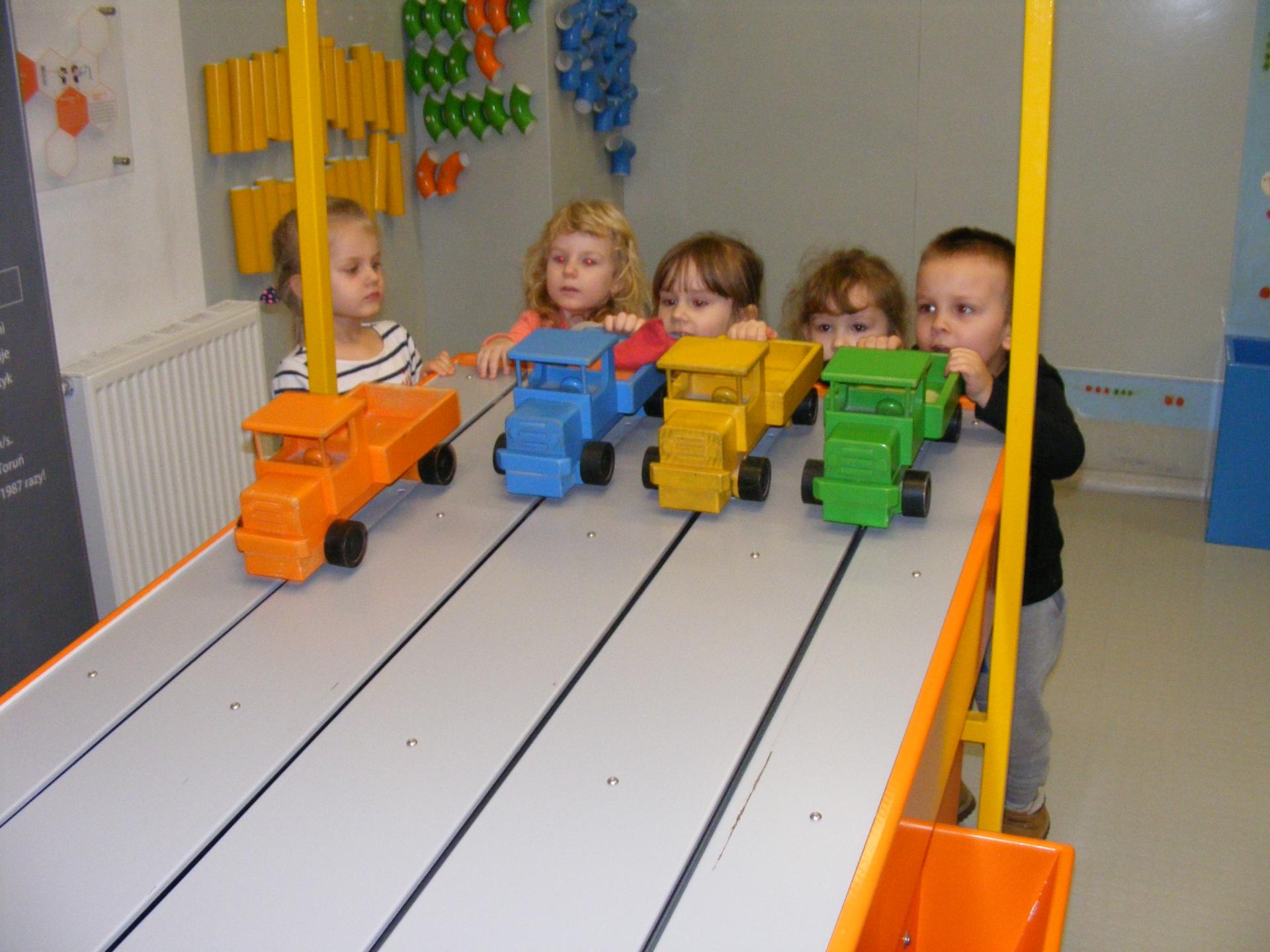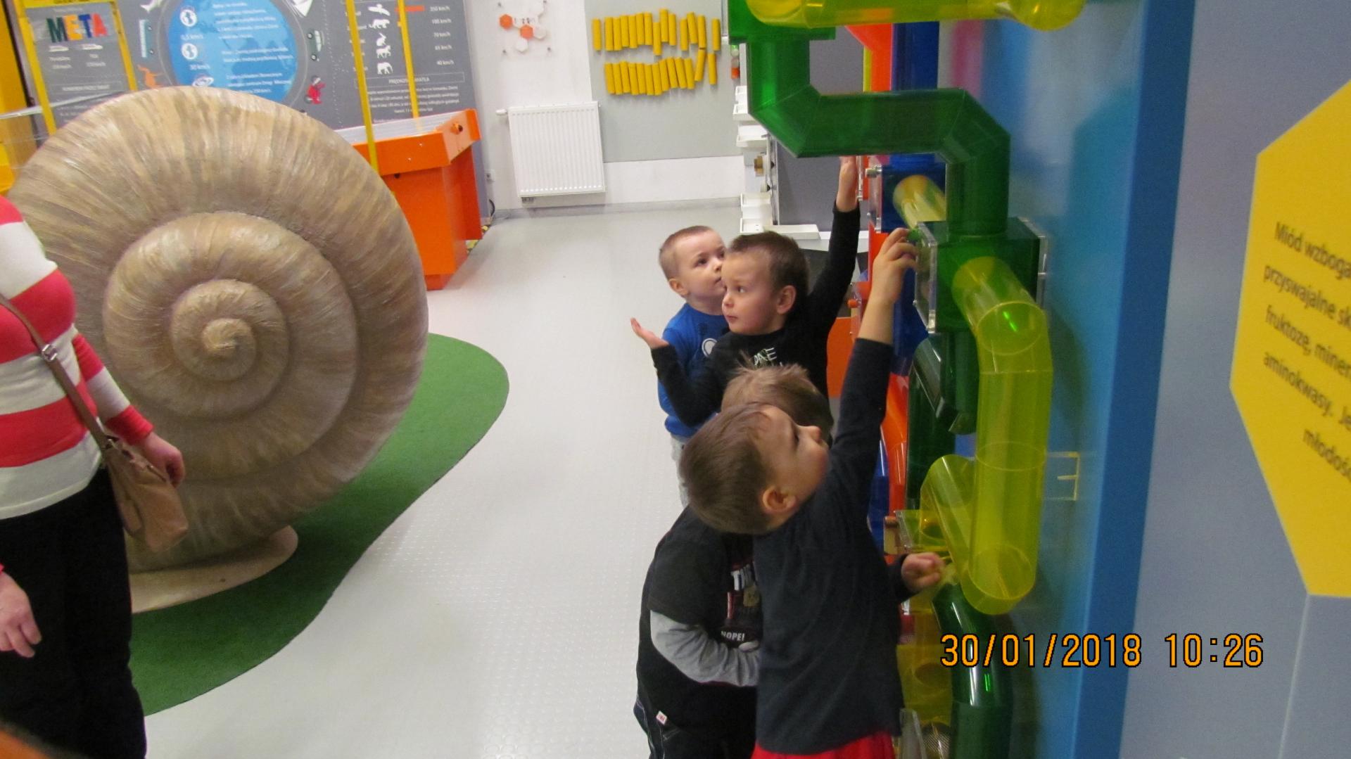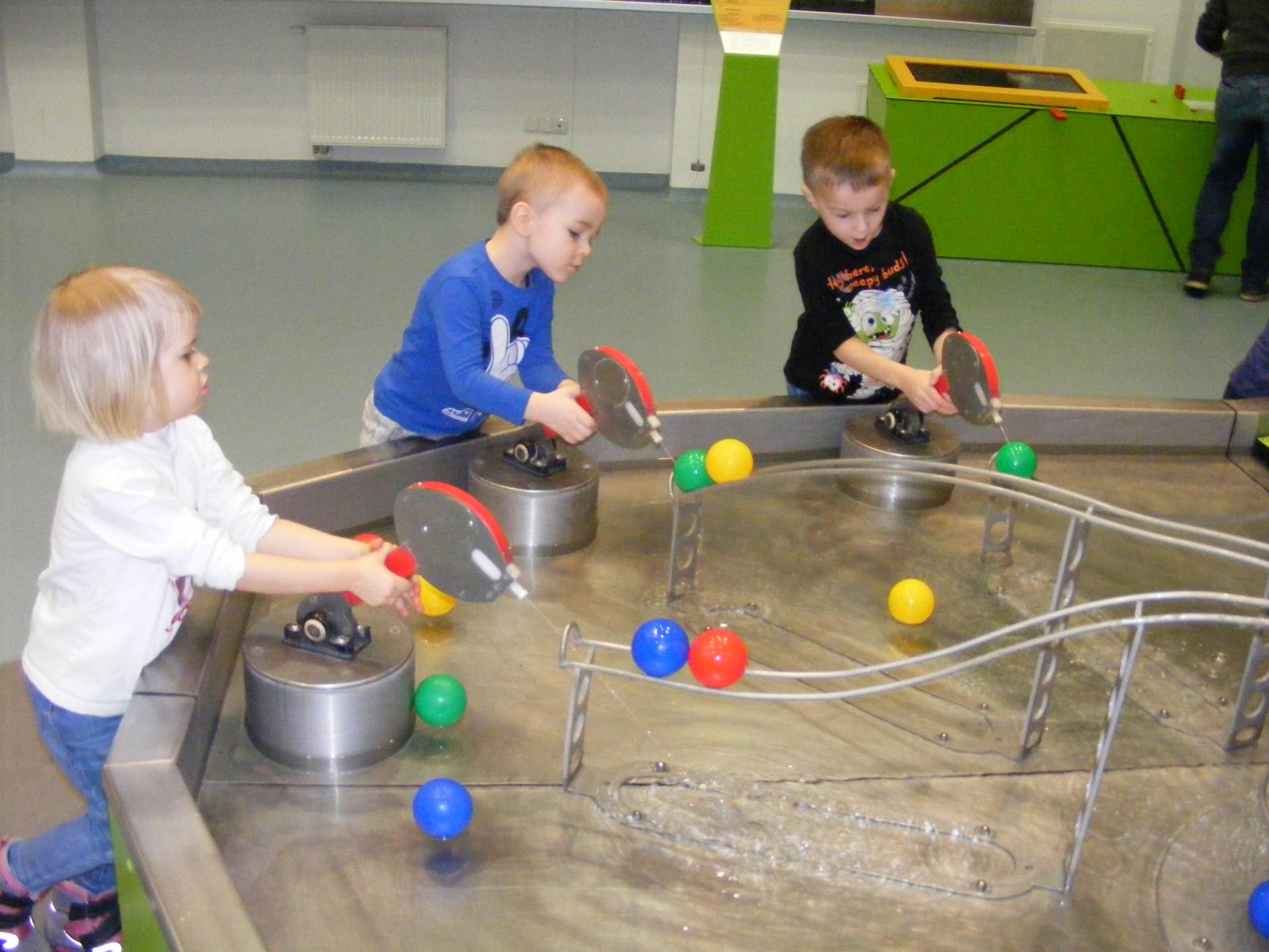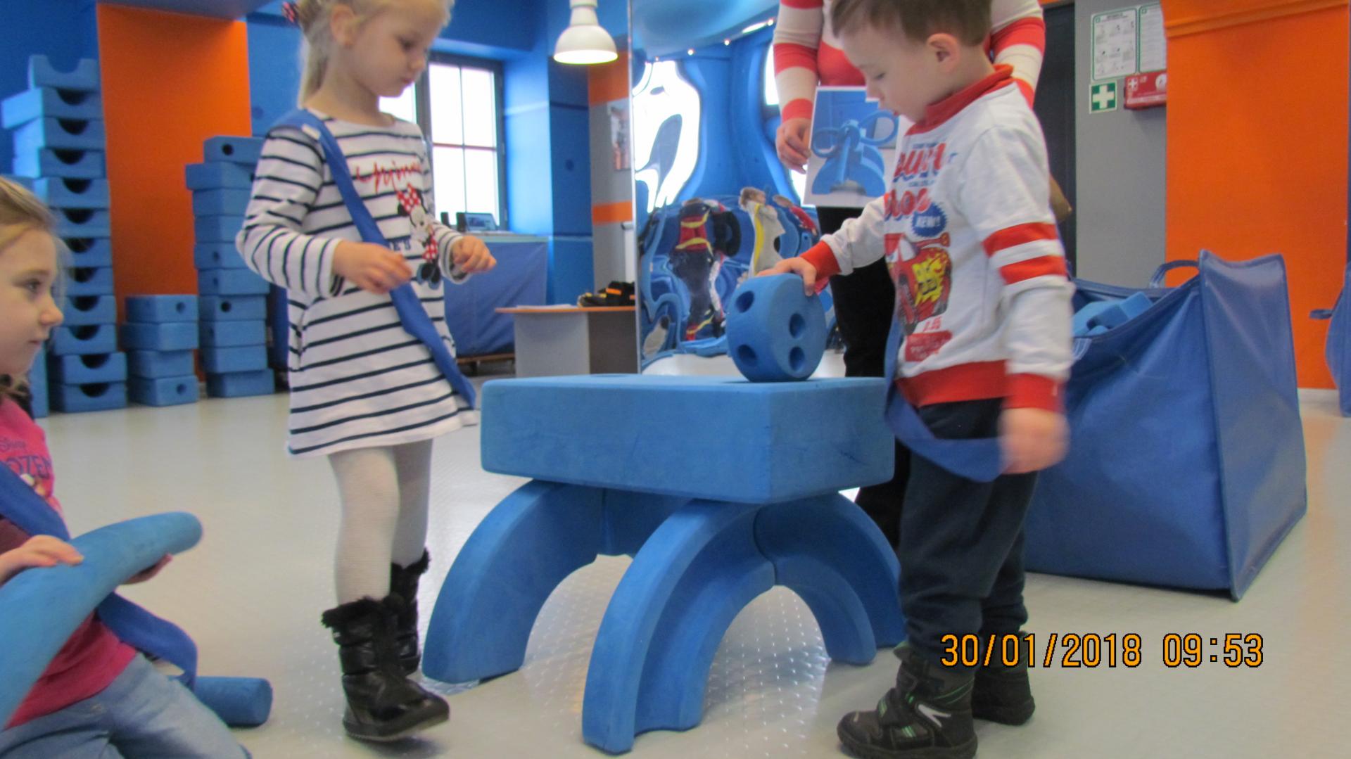 Z niebieskich klocków Imagination Playground zbudowaliśmy słonia, żyrafę i pingwina. Potem odwiedziliśmy wystawy stałe: Rzeka, przeŻycie, i O obrotach. Najwięcej frajdy mieliśmy podczas zabaw w rwącej rzece, niektórzy mokrzy po pachy, ale świetnie się bawiący nie chcieli wracać do przedszkola. Dobrze, że kochane mamy spakowały nam zapasowe ubranka, więc szybko przebraliśmy się i szczęśliwi wróciliśmy na ciepły obiad do przedszkola. Dzień udany w 100%!
